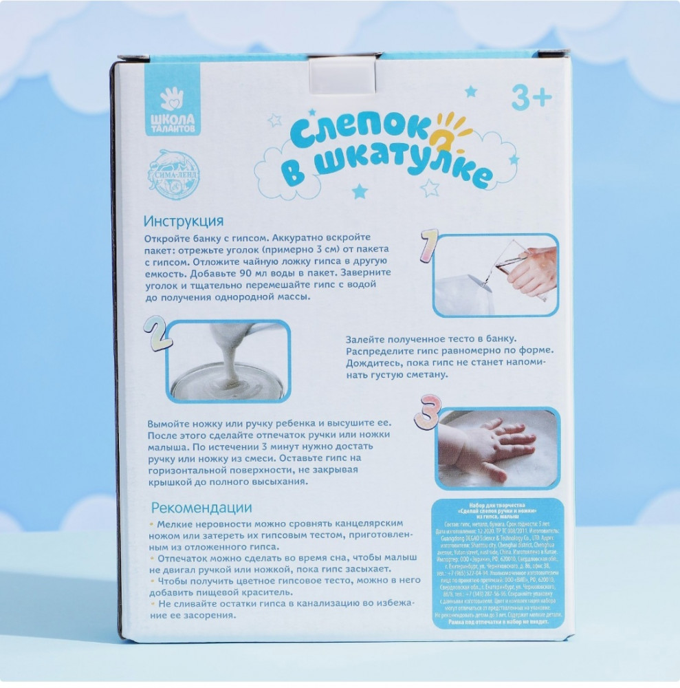 💳 Оплатить за товар можно при получении 🇰🇿 Есть бесплатная доставка по Казахстану от 1 дня 🎁 Копите бонусы с каждой покупки Сохраните волшебные воспоминания с помощью нашего набора!Как сохранить не только в памяти то время, когда малыш был ещё совсем маленьким? Наш набор для создания слепка в шкатулке станет идеальным подарком на рождение малыша.После сделанного слепка шкатулку можно украсить наклейкой и стразами, которые входят в набор, и поставить на видное место в качестве сувенира.Следуйте инструкции и ваши воспоминания о первых мгновениях жизни малыша будут увековечены! |