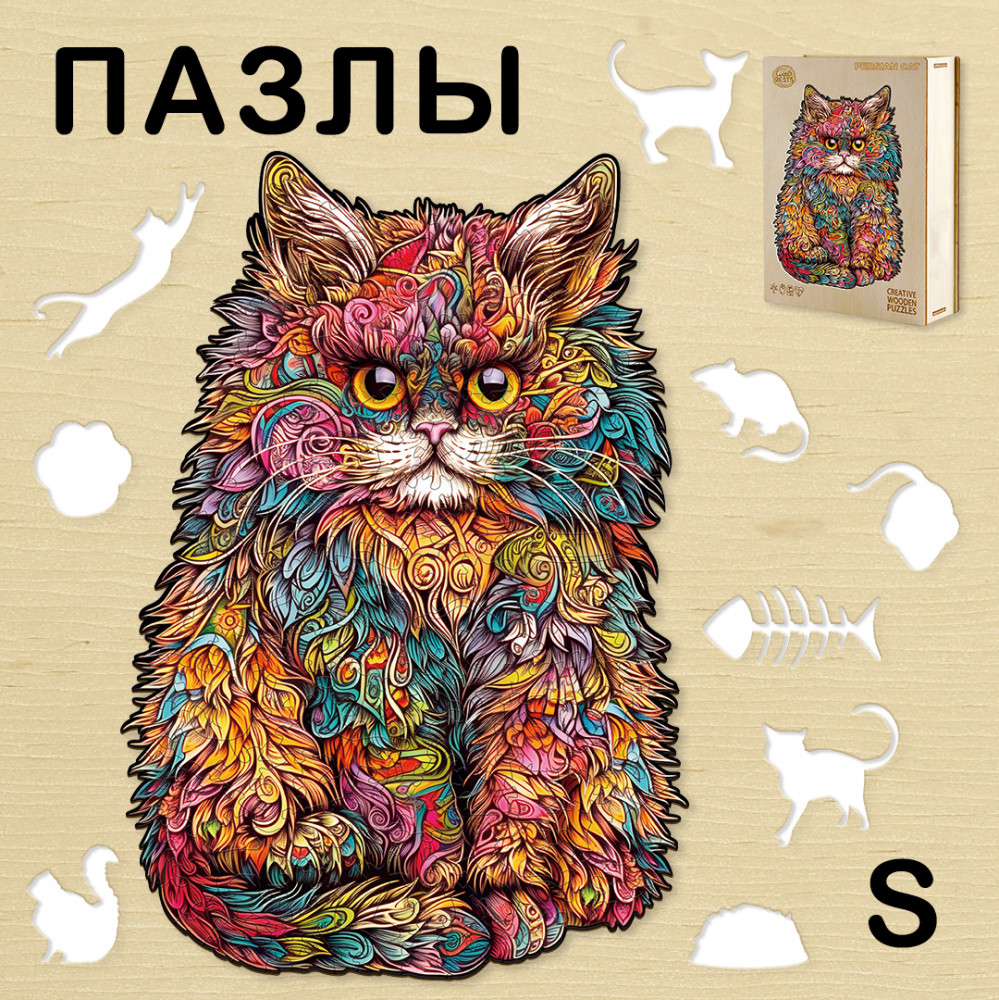 Woodbests Пазл деревянный «Пёстрая киска S»