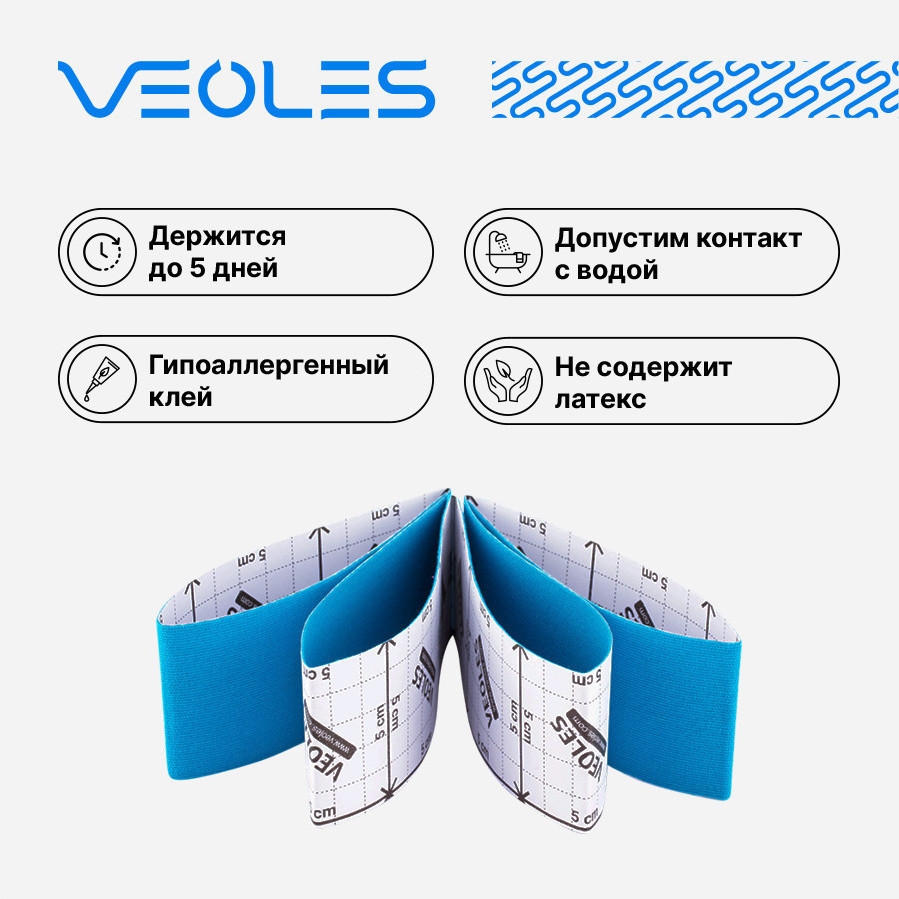 VEOLES Кинезио-тейп «Лента» для наложения на кожу лица и тела с усиленной фиксацией