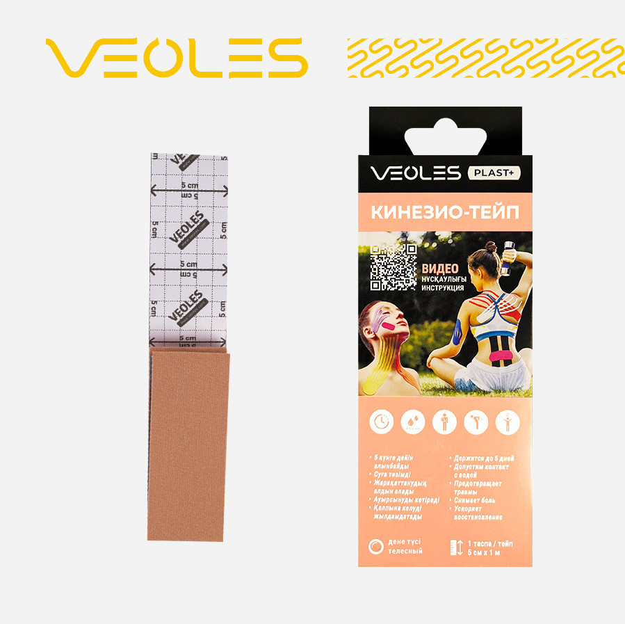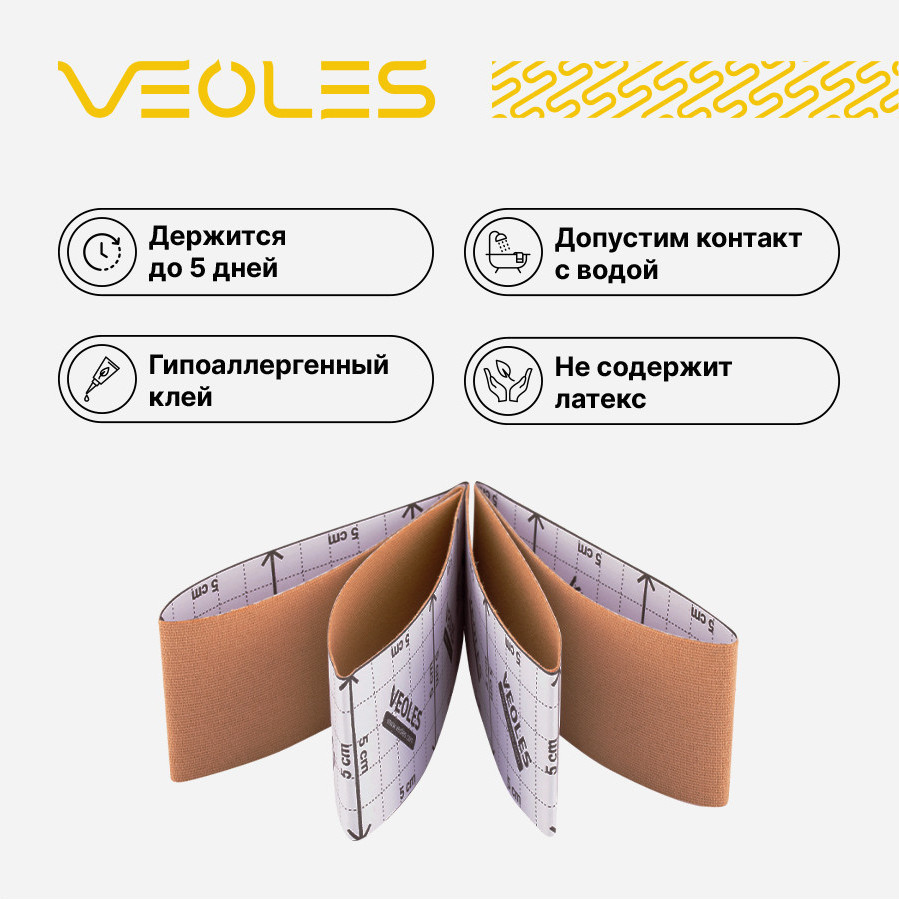 VEOLES Кинезио-тейп «Лента» для наложения на кожу лица и тела с усиленной фиксацией