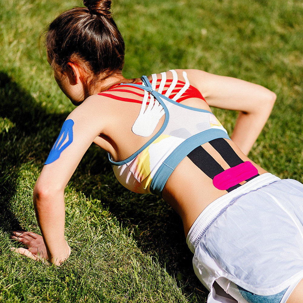 • 4 розовых кинезио-тейпа — 15 × 5 см;