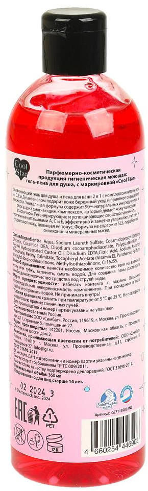 Cool star Гель-пена для душа 2 в 1 «Малиновый десерт»В данный момент этот товар отсутствует в продаже. Возможно, у нас найдется аналогичный или похожий товар здесь. Гель-пена для душа 2 в 1 «Малиновый десерт» — настоящий must-have для ухода за кожей: |