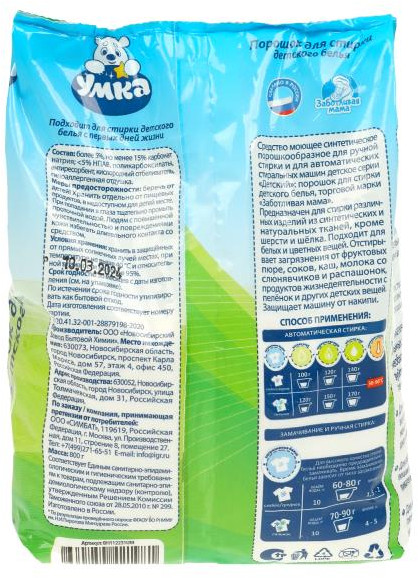 Порошок для стирки детского белья «Умка» ТМ «Заботливая мама» — незаменимый помощник в уходе за одеждой малыша: