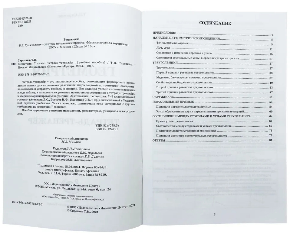 Геометрия. 7 класс. Тетрадь-тренажёр. Базовый уровеньВ данный момент этот товар отсутствует в продаже. Возможно, у нас найдется аналогичный или похожий товар здесь. Тетрадь-тренажёр — это уникальное пособие, помогающее формировать необходимые навыки для выполнения различных видов заданий по геометрии, своевременно выявлять и устранять пробелы в знаниях. Все задания удобно систематизированы в виде таблиц, а выполнять их решение можно непосредственно в тетради-тренажёре. Материалы ориентированы на учебник «Математика. Геометрия: 7–9 классы: базовый уровень» (Атанасян Л.С., Бутузов В.Ф., Кадомцев С.Б. и др.), включённый в Федеральный перечень учебников. Также возможно применение этих материалов с другими учебниками по геометрии 7-го класса. Пособие адресовано учителям математики, репетиторам, учащимся и их родителям. |