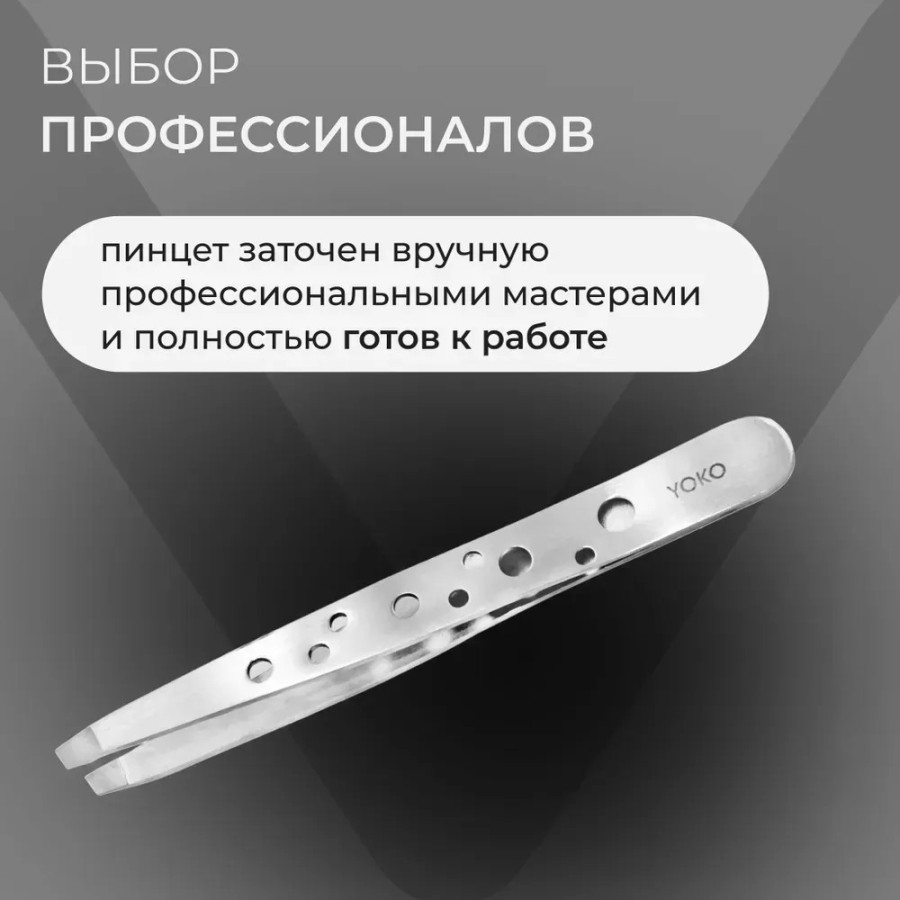 Профессиональный пинцет для бровей Yoko. Сделан из японской нержавеющей стали, благодаря которой полностью исключается коррозия инструмента. Заточены вручную. Отлично захватывает нужный волос, который Вы хотите удалить.
