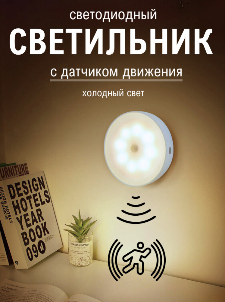 Ночник с датчиком движения-15% +17 быстрая зарядка длительная автономность хорошая подсветка датчик движения магнитное крепление