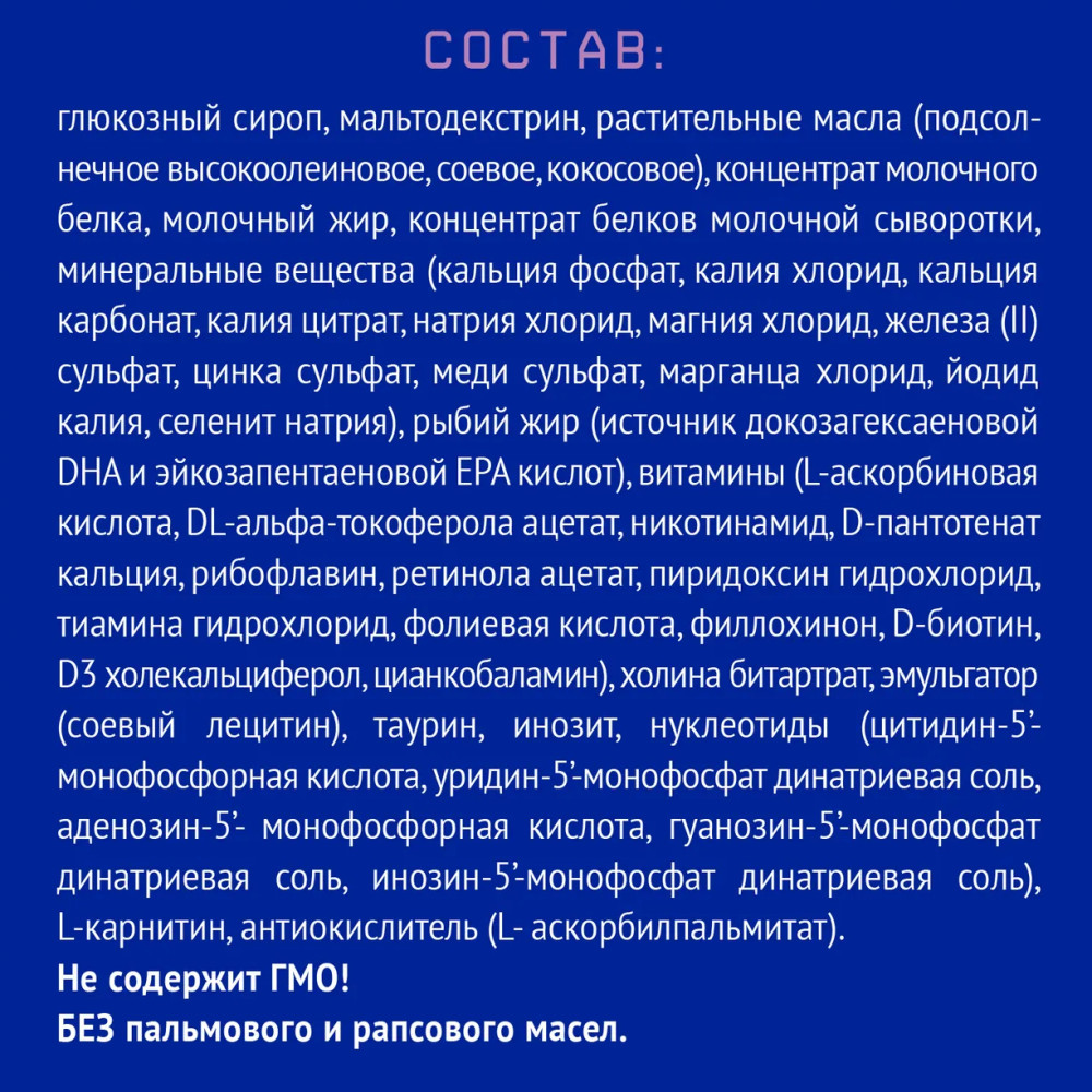 • особый жировой состав с натуральным молочным жиром без пальмового и рапсового масел;