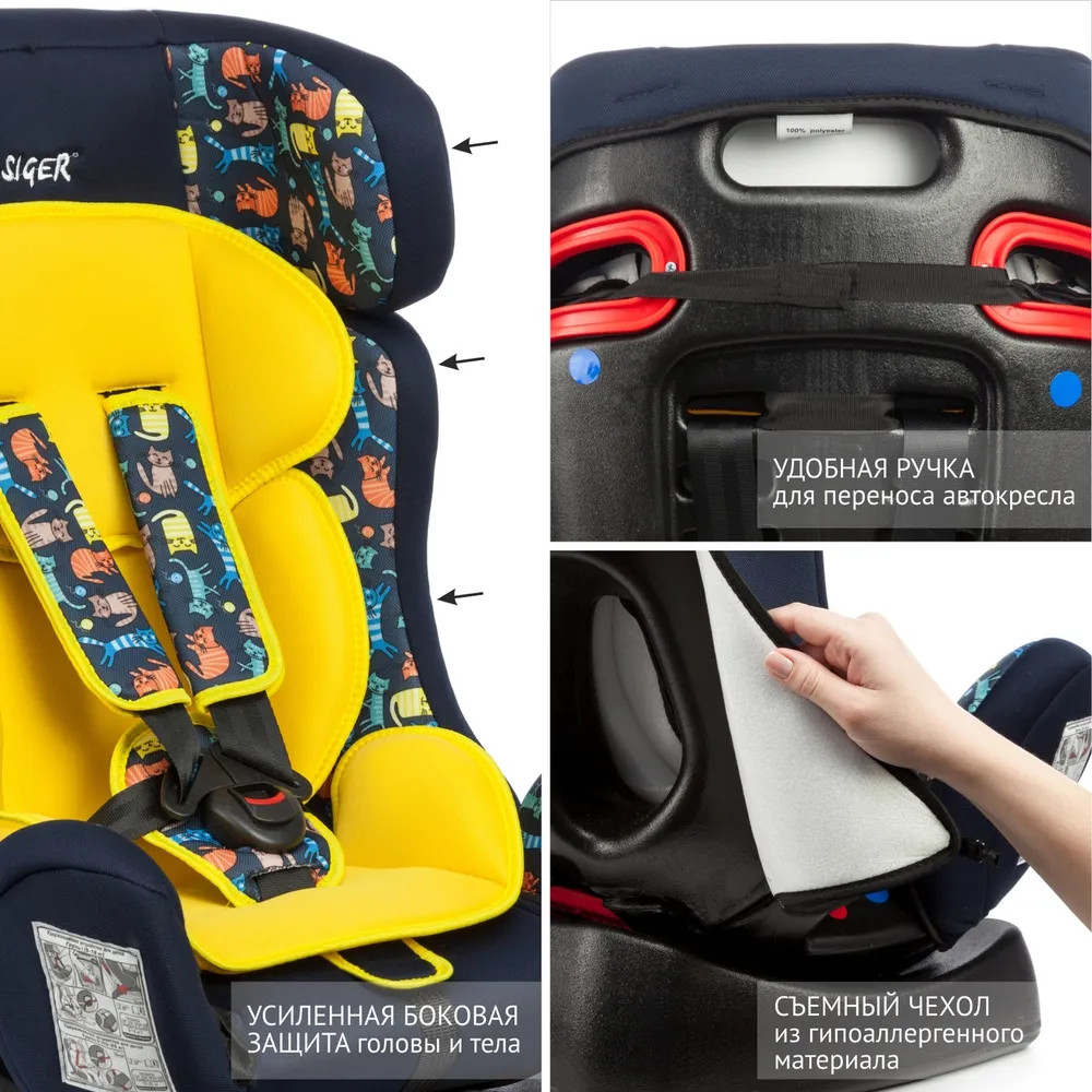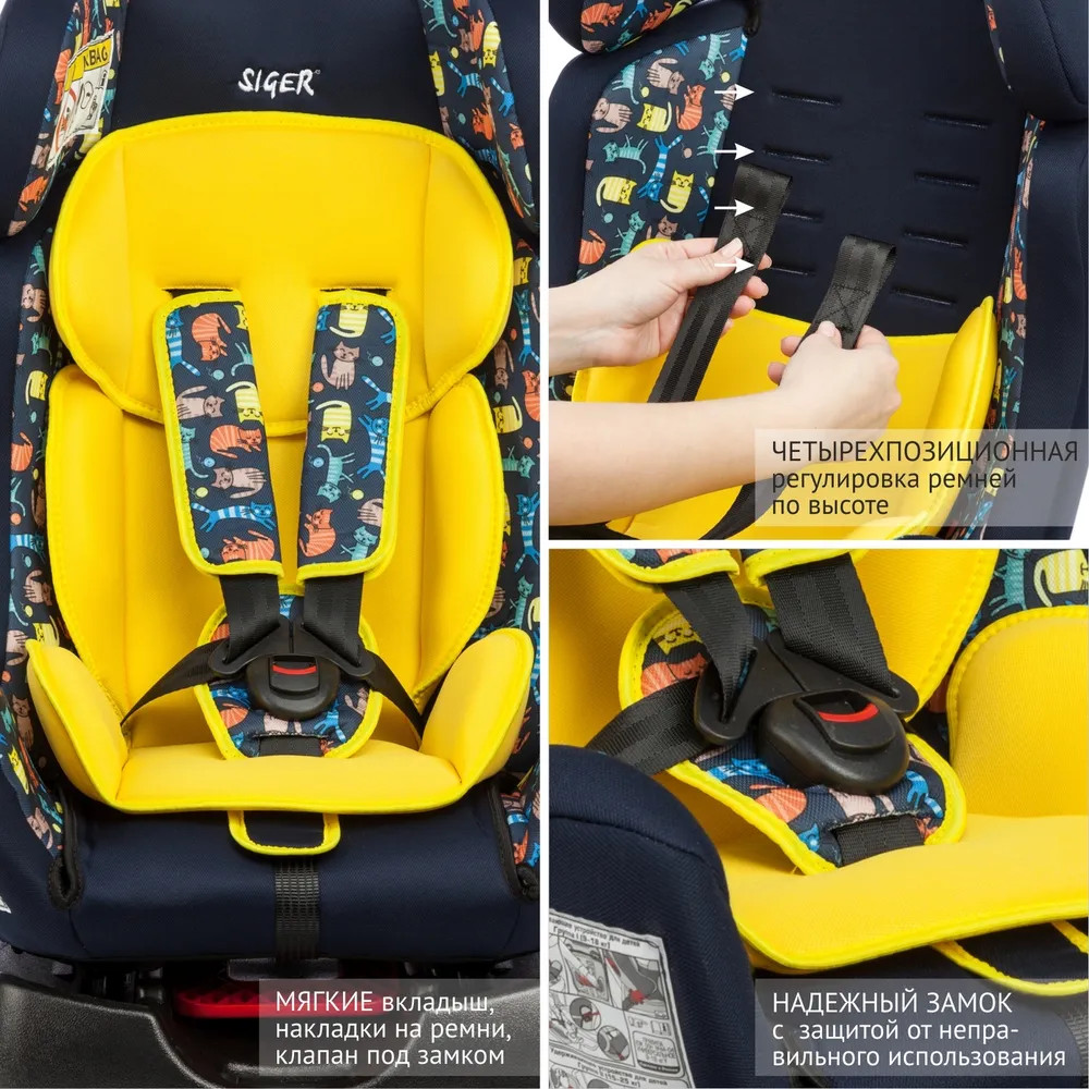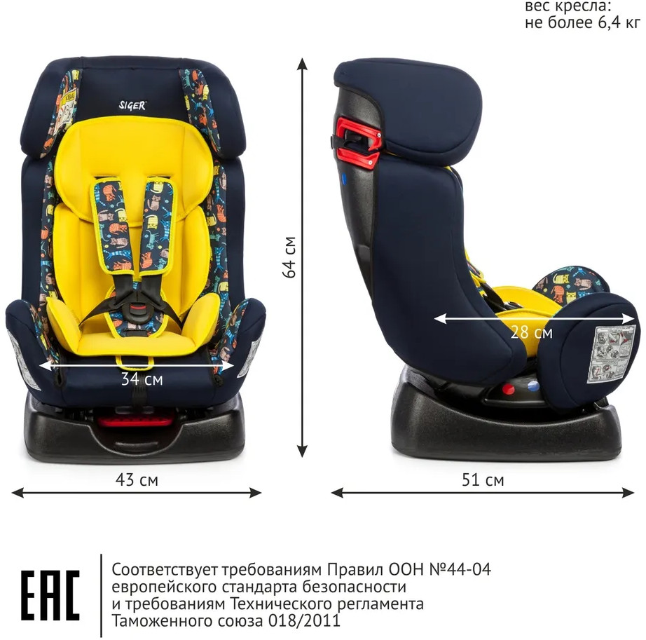 Детское автокресло Siger Диона относится к возрастной группе 0+/1-2, для детей от рождения до 7 лет, весом до 25 кг. Кресло Siger Диона трансформируется под три возрастные группы: от 1 года до 3-4 лет (полная комплектация), от 3 до 6-7 лет (снимаются ремни и внутренние накладки). Мягкий подголовник, мягкий вкладыш, специальная ортопедическая спинка и накладки внутренних ремней повышают уровень комфорта во время поездки. Чехол изготовлен из качественного износостойкого материала. Автокресло Siger Диона имеет ярко-выраженную боковую и тыльную защиту головы. Три положения регулировки наклона автокресла позволяют ребенку удобно спать в дороге.
