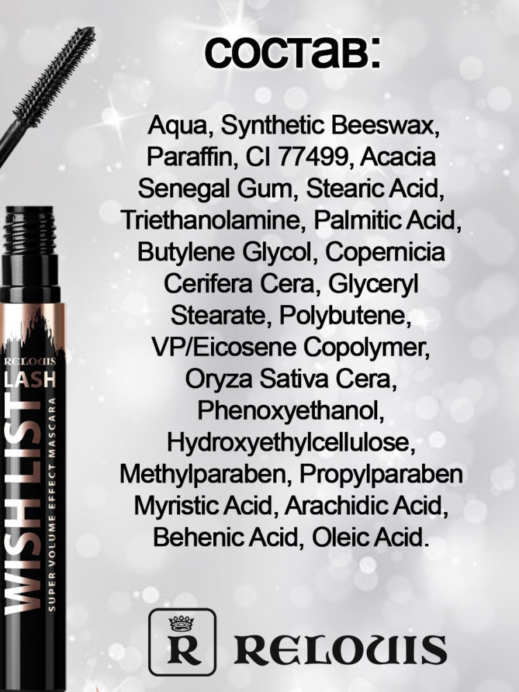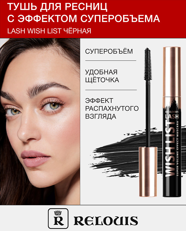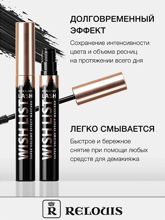 RELOUIS Тушь для ресниц с эффектом суперобъема «Lash Wish List», оттенок Черный