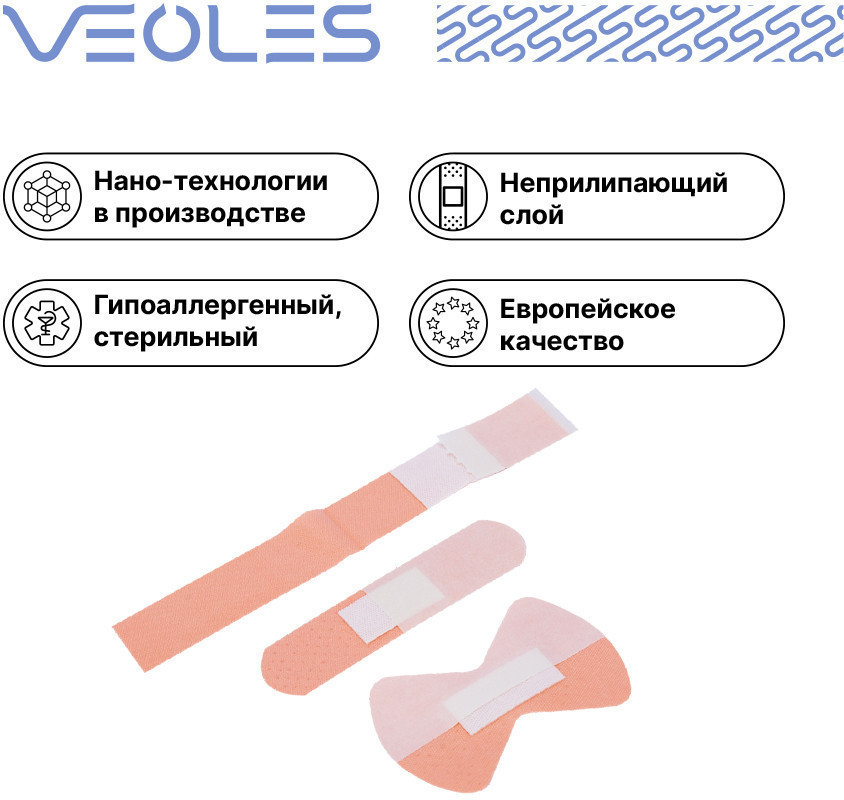 VEOLES Набор пластырей эластичных тканевых-12% +18