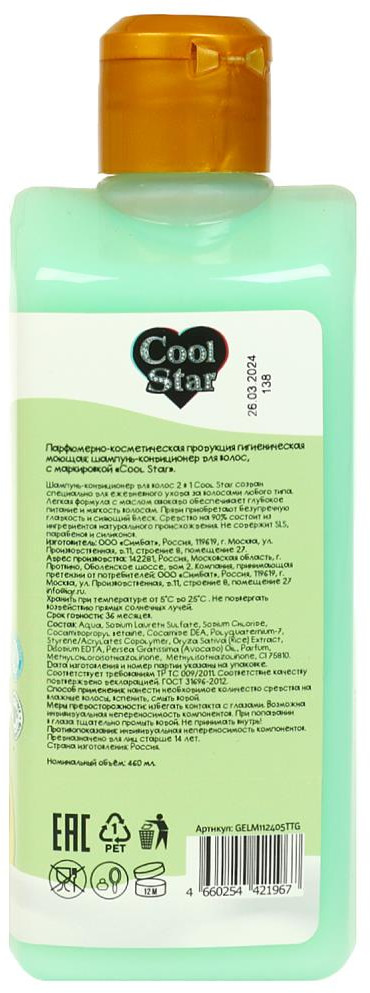 Cool star Шампунь-кондиционер 2 в 1 «Milk. Авокадо детокс»