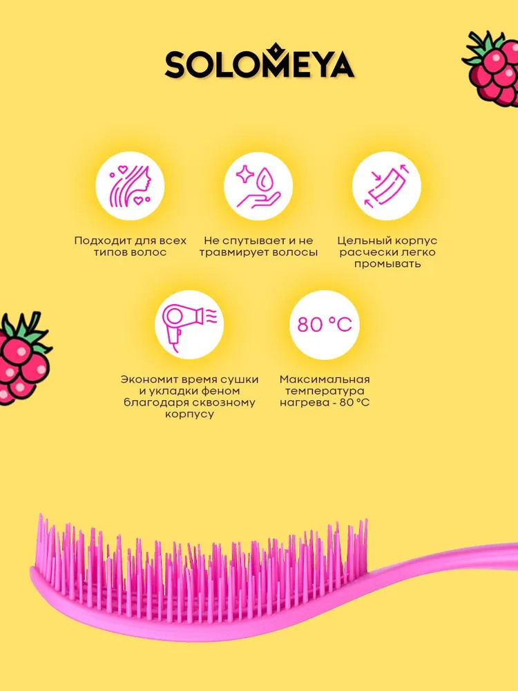 Solomeya Расческа для сухих и влажных волос с ароматом малины