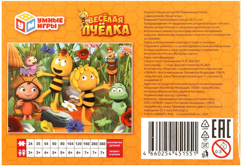 Умные игры Пазл «Весёлая пчелка»-25% +6