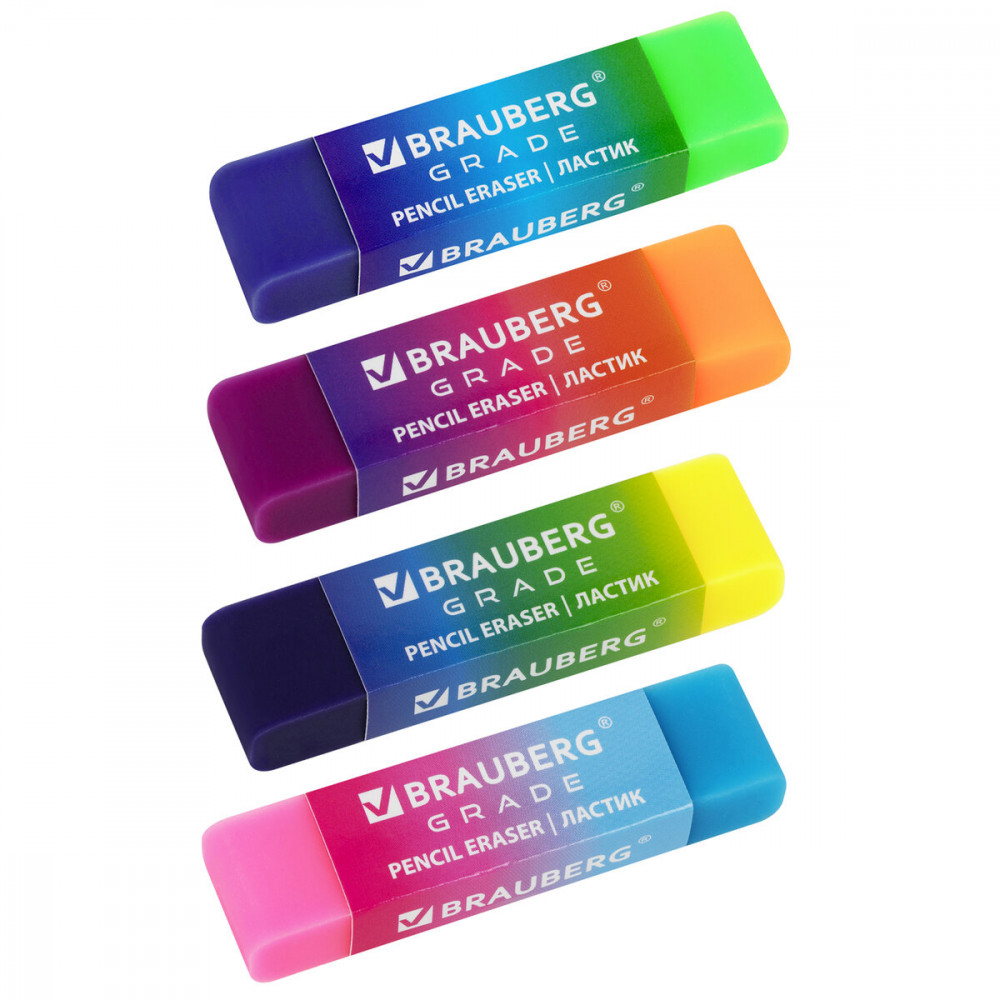 Brauberg Набор ластиков Grade-20% +20 яркие цвета разнообразие мягкие хорошо стирают ломается