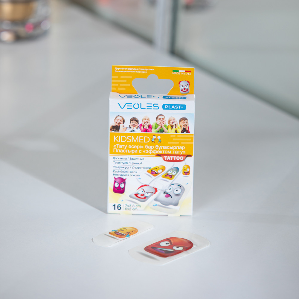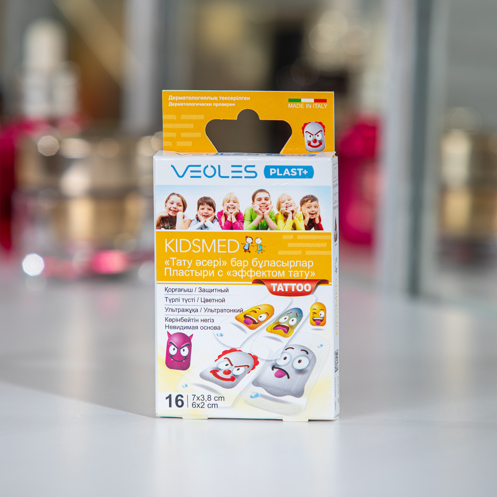 💳 Оплатить за товар можно при получении 🇰🇿 Есть бесплатная доставка по Казахстану 🎁 Копите бонусы с каждой покупки Детские пластыри VEOLES с эффектом «тату» в индивидуальной упаковке двух размеров — 6 штук 7 × 3.8 см и 10 штук 6 × 2 см производятся в Италии на основе экологически чистого сырья немецкой фирмы BASF. |