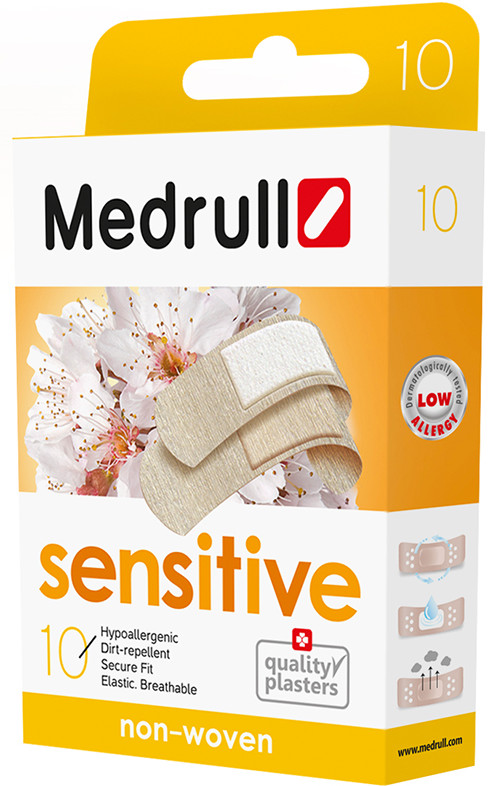 Удобные, водонепроницаемые, гипоаллергенные, грязенепроницаемые, эластичные плотно прилегающие пластыри, для чувствительной кожи. Изготовлены из тонкого нетканого материала. Цвет — телесный. Вес-49-61 г/м². Толщина- ≥ 20 мм. Абсорбирующая подушечка с высокой впитывающей способностью, изготовлена из вискозы с применением полипропилена. Полоски пластыря запакованы в коробочки различных размеров и в различных количествах.