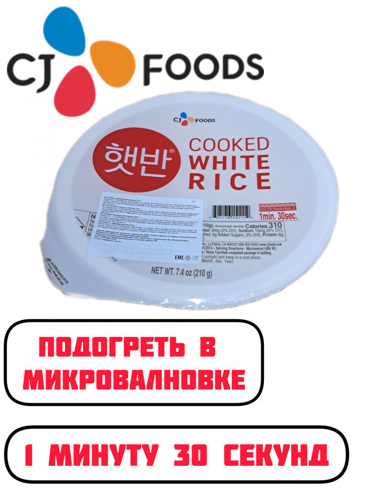 Рис корейский CJ Foods готовый — это готовое блюдо из высококачественного риса, который приготовлен по традиционному корейскому рецепту. Продукт производится в Южной Корее компанией CJ Foods и упаковывается в удобные порционные пакеты по 210 г. Рис корейский CJ Foods готовый обладает отличным вкусом и ароматом, который достигается благодаря использованию только натуральных ингредиентов и уникальной технологии приготовления. Продукт готов к употреблению и не требует дополнительной обработки или приготовления.