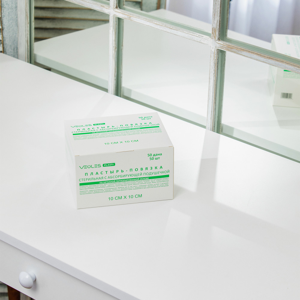 VEOLES Пластырь-повязка послеоперационная стерильная воздухопроницаемая с абсорбирующей подушечкой-18% +10