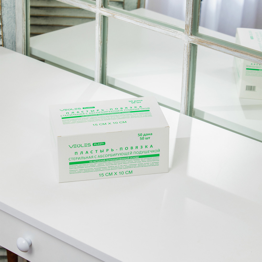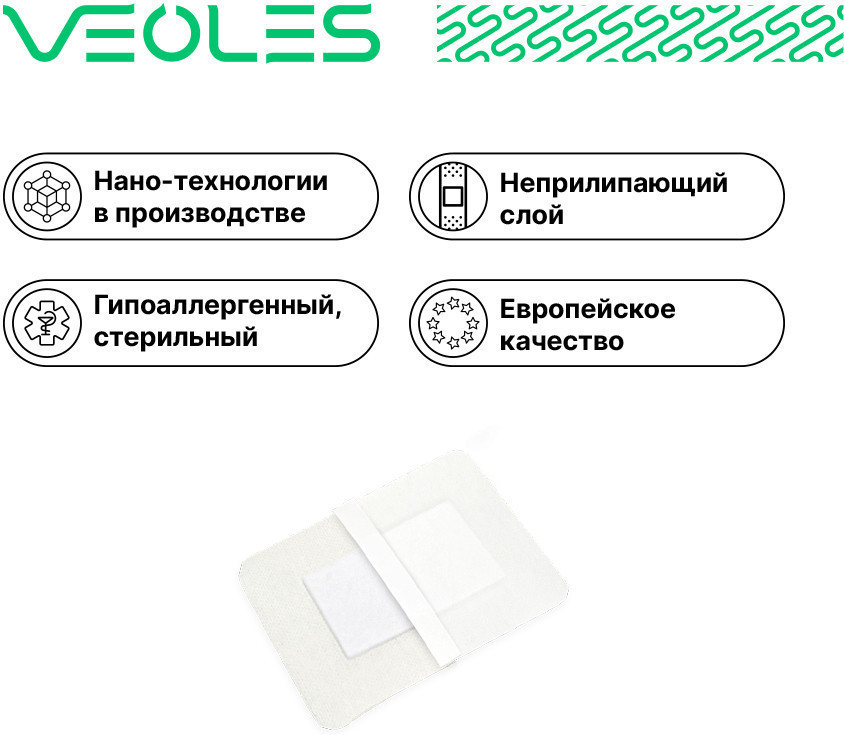 VEOLES Пластырь-повязка послеоперационная стерильная воздухопроницаемая с абсорбирующей подушечкой-21% +14