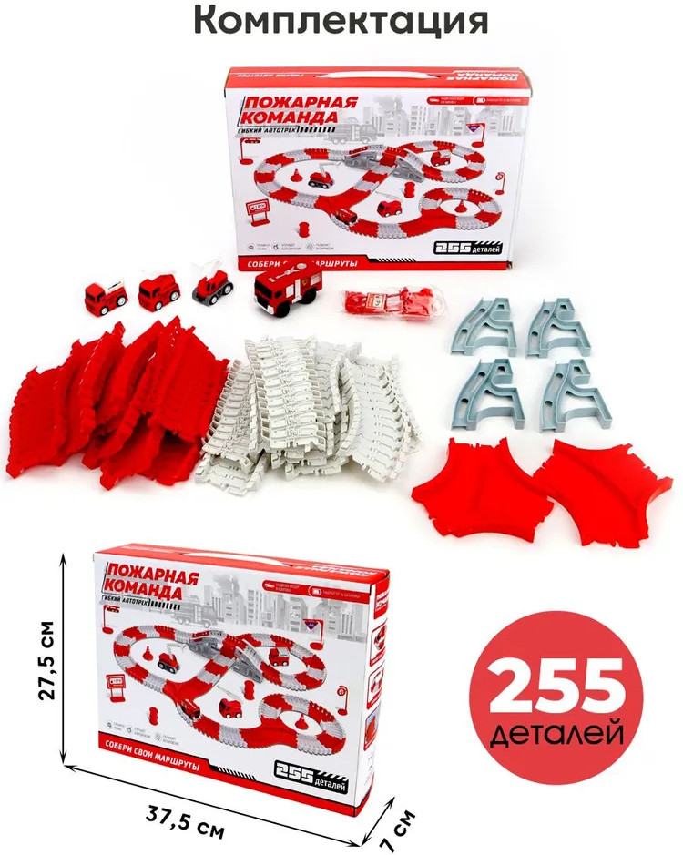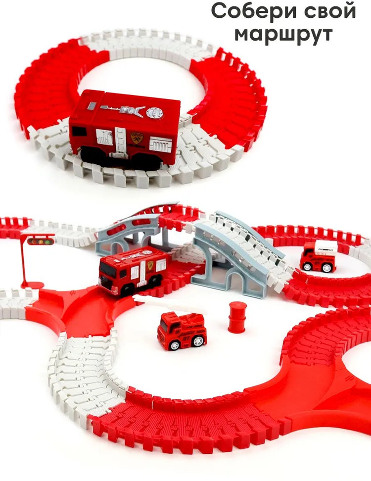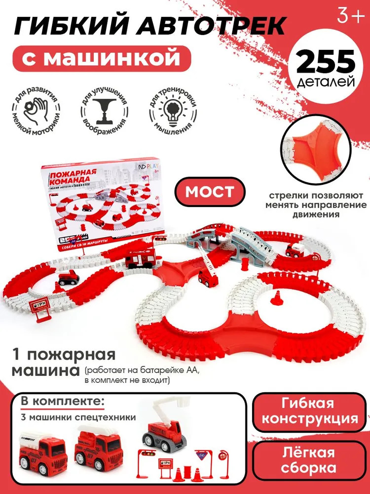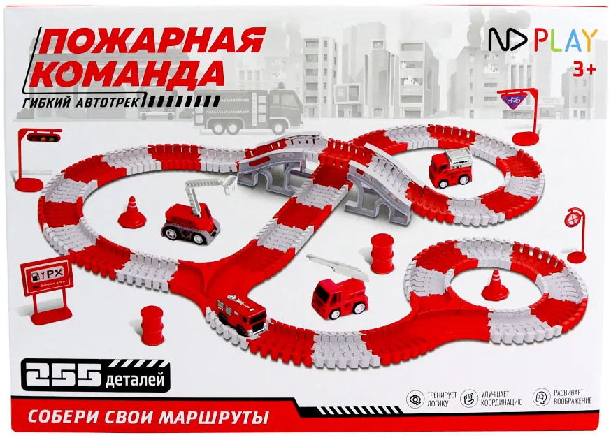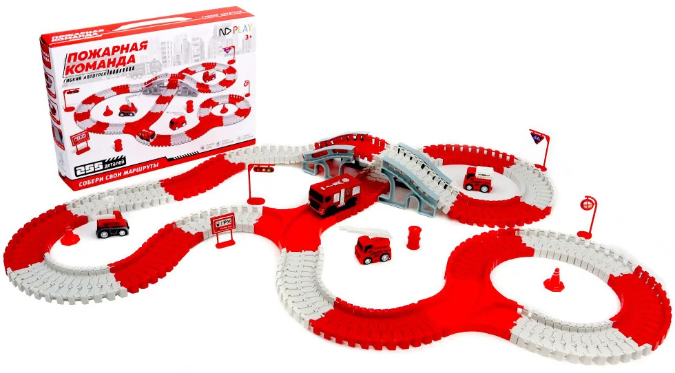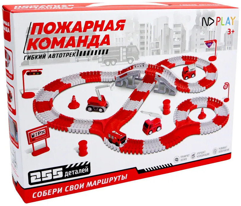 ND Play Трасса с машинкой на батарейке «Пожарная команда»В данный момент этот товар отсутствует в продаже. Возможно, у нас найдется аналогичный или похожий товар здесь. Гибкий автотрек — это новый тренд в направлении игровых трасс и игр с машинками. Трассу можно собирать разными способами, не только для того, чтобы она меняла направление в разные стороны и поворачивала, благодаря специальным рельсам, а также ее можно сделать выпуклой или вогнутой в виде кольца, заставив машинку ездить внутри по кругу. В серии гибких автотреков «Пожарная команда» — трасса яркого красно-белого цвета, в набор входит пожарная машина и три дополнительные машинки специальной техники, а также различные дорожные знаки, мост, указатели для моделирования игровых сюжетов в условиях города — всего 255 деталей. Набор предназначен для детей старше 3-х лет. |