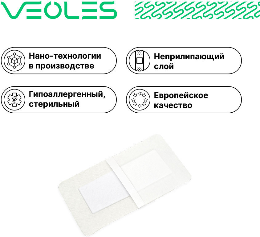 VEOLES Пластырь-повязка послеоперационная стерильная воздухопроницаемая с абсорбирующей подушечкой-21% +20 размер воздухопроницаемость