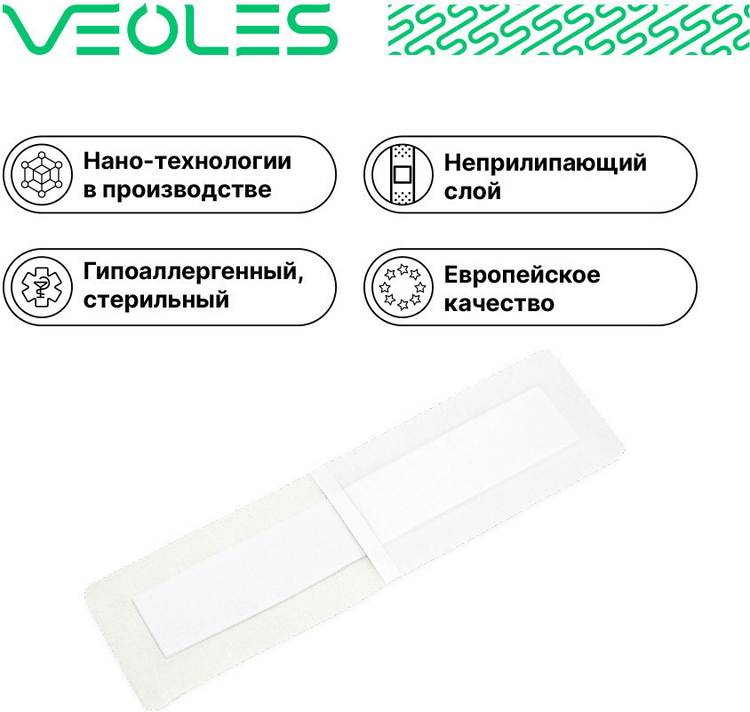 VEOLES Пластырь-повязка послеоперационная стерильная воздухопроницаемая с абсорбирующей подушечкой-19% +32