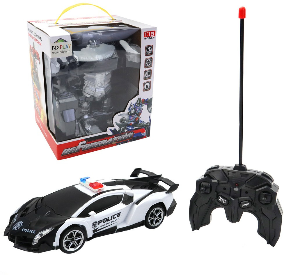 ND Play Машинка на пульте управления «Робот трансформер»В данный момент этот товар отсутствует в продаже. Возможно, у нас найдется аналогичный или похожий товар здесь. Уникальность радиоуправляемой машинки в том, что при нажатии на кнопку пульта она трансформируется в робота и обратно. При это ездить может как робот, так и машинка. Радиоуправление обеспечивает движение вперед, назад, направо, налево и трансформацию из машинки в робота и обратно. Пульт 4 ГГЦ работает от батареек AA-2 шт, Машинка AA-3 шт, (в комплект не входят). Машинка обладает световыми эффектами. Игрушка упакована в красивую коробку, идеально подходит в подарок. |
