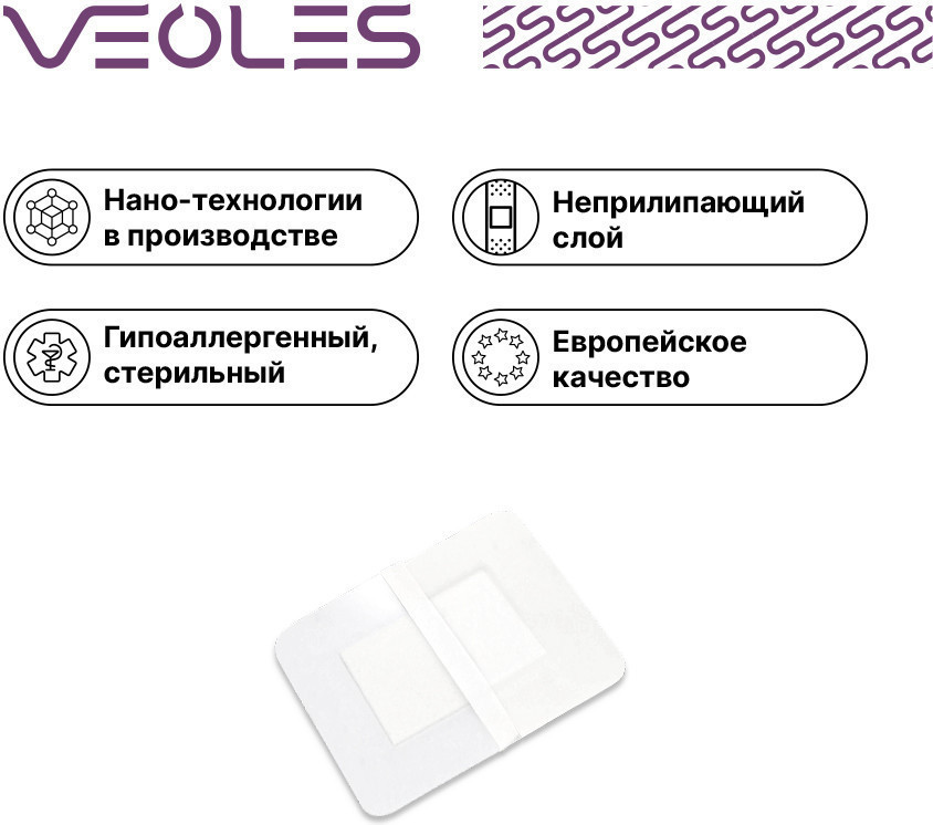 VEOLES Пластырь-повязка послеоперационная стерильная водонепроницаемая с абсорбирующей подушечкой-23% +10