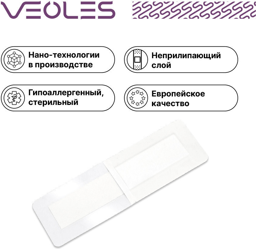 VEOLES Пластырь-повязка послеоперационная стерильная водонепроницаемая с абсорбирующей подушечкой-20% +57