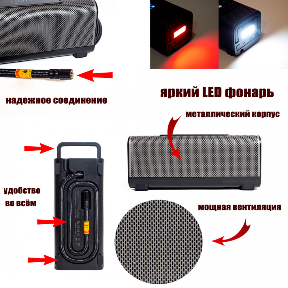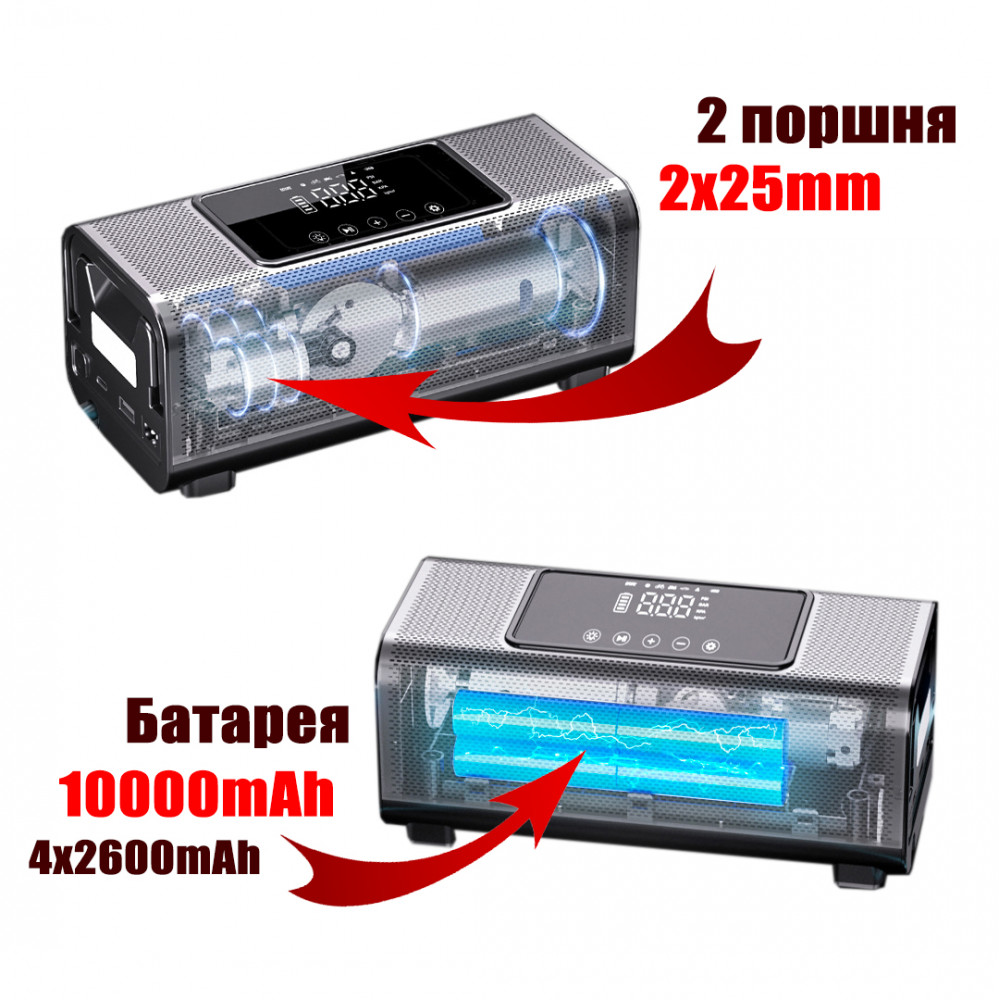 Автокомпрессор цифровой поршневойВ данный момент этот товар отсутствует в продаже. Возможно, у нас найдется аналогичный или похожий товар здесь. Автокомпрессор цифровой поршневой. Данный прибор не маленькая игрушка для накачки мячиков, он действительно способен накачать колесо автомобиля. Высокая мощность и умные технологии в компактном корпусе. Автомобильный насос имеет мощную батарею 10400mAh, производительный 2 поршневой насос и интеллектуальную систему управления. Автокомпрессор беспроводной поможет вам подкачивать колеса сверяясь по датчикам давления шин так как имеет высокоточный цифровой манометр, за счет высокой мощности и шланга 60см может накачивать колеса большого радиуса. Из опций можно отметить яркий светодиодный фонарь и функцию Power Bank. Работает как обычный насос от прикуривателя так и от собственных аккумуляторов. В комплекте удобная сумка для хранения. Аккумуляторный автокомпрессор можно использовать как насос для бассейна, насос для мячика, насос для мотоцикла, насос для надувной лодки, насос для велосипеда и т.д. |
