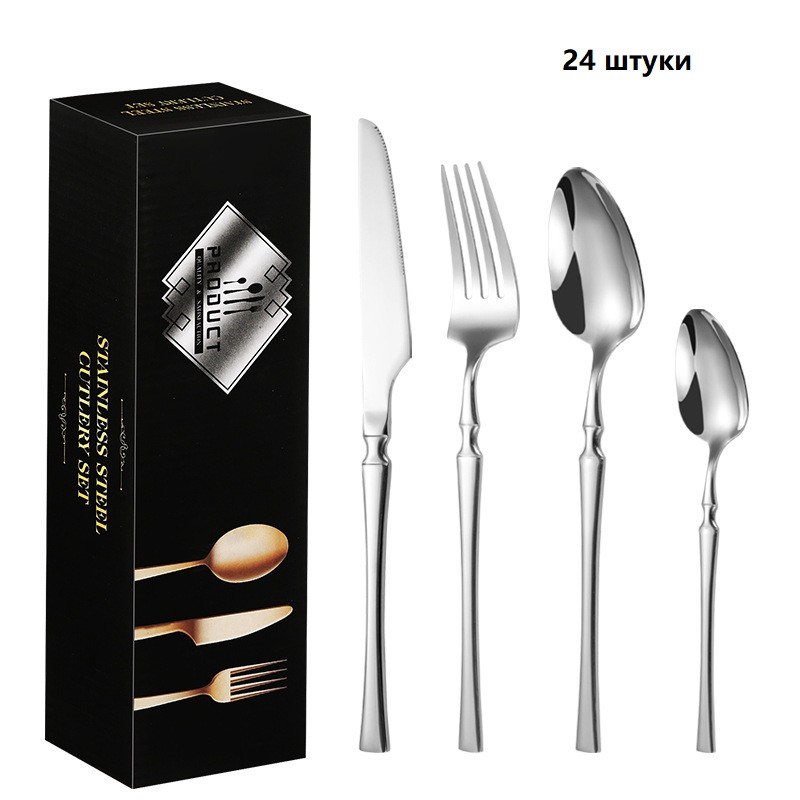 SLD Набор столовых приборовВ данный момент этот товар отсутствует в продаже. Возможно, у нас найдется аналогичный или похожий товар здесь. Столовые приборы отличного качества из нержавеющей стали, серебристые. Классические, без рисунка, отлично смотрятся и на праздничном столе, и в повседневной жизни. Фирменная коробка отлично подходит для подарка. Благодаря отсутствию напыления можно мыть в посудомоечной машине. В комплекте 6 столовых ложек, 6 вилок, 6 ножей и 6 чайных ложек. |