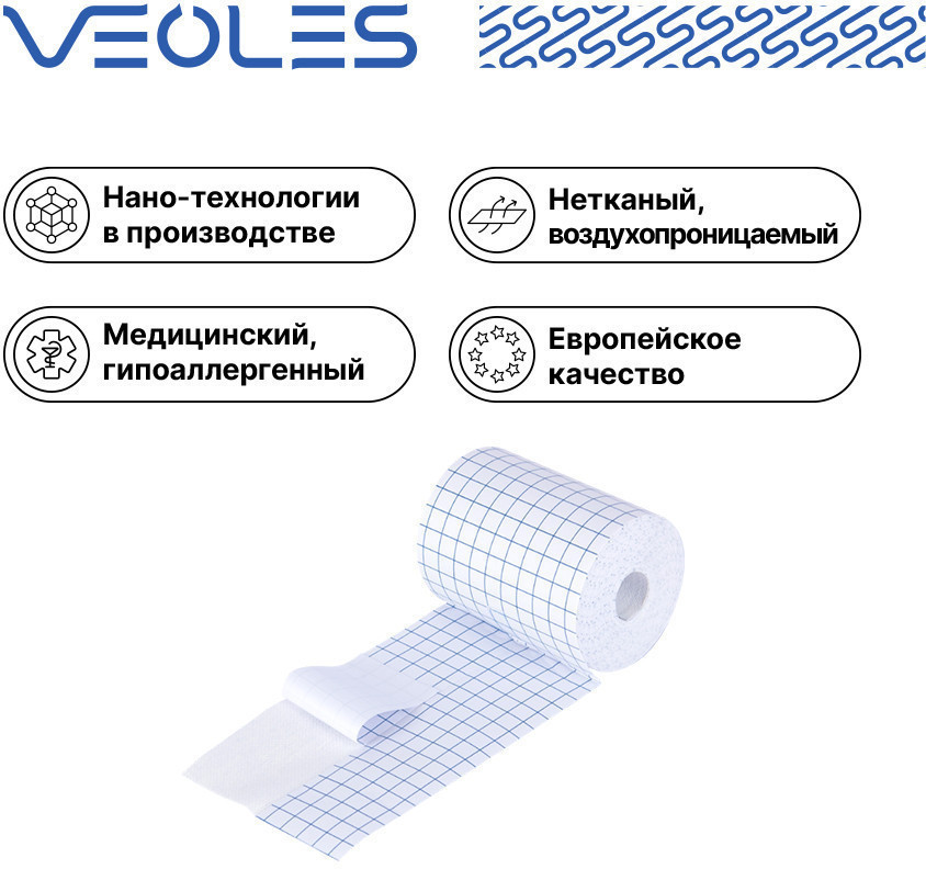 VEOLES Пластырь в рулоне медицинский воздухопроницаемый на нетканой основе-24% +55