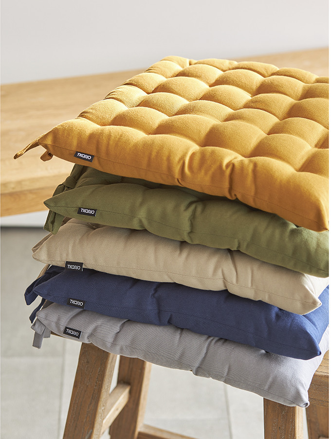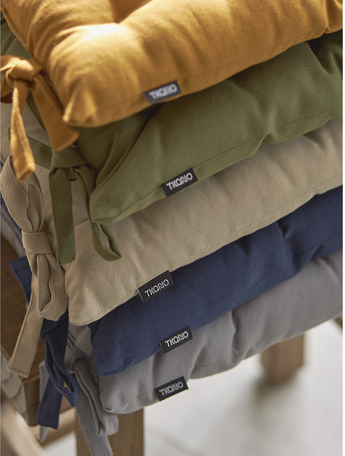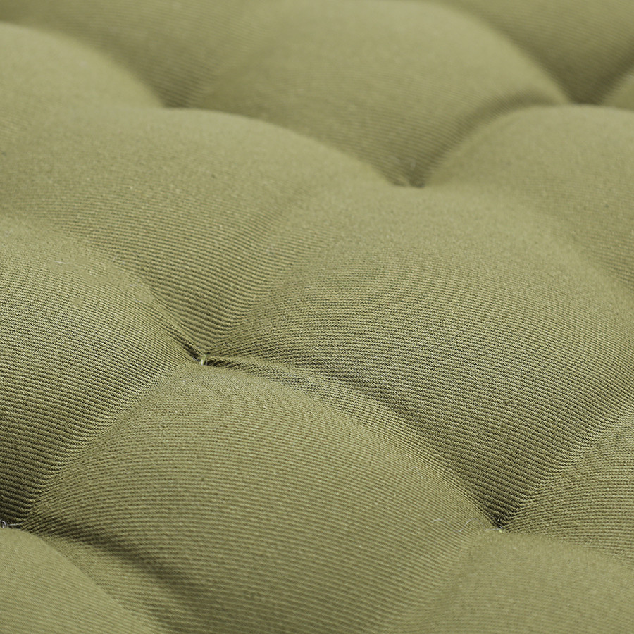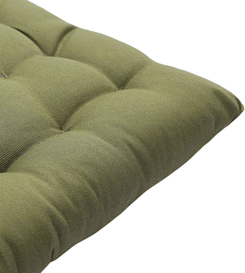 Подушка оливкового цвета из коллекции Essential станет отличным дополнением к вашей кухонной мебели. Ее можно использовать в качестве мягкой накладки на деревянные или металлические стулья, чтобы сделать их жесткую поверхность более удобной для сидения. Подушка легко фиксируется на ножках мебели с помощью специальных завязок. Однотонное изделие в лаконичном дизайне органично вписывается в любой современный интерьер. Чехол подушки изготовлен из экологичного и долговечного 100% хлопка. В качестве наполнителя используется плотный полиэстер, который позволяет изделию сохранять первоначальную форму на протяжении всего срока службы.