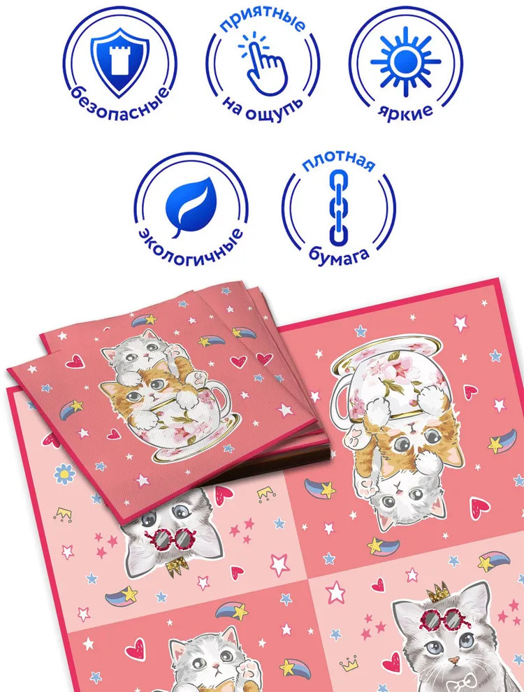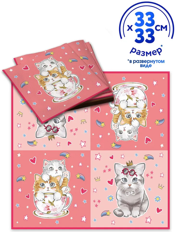 ND Play Салфетки бумажные «Котики на розовом»-15% +36