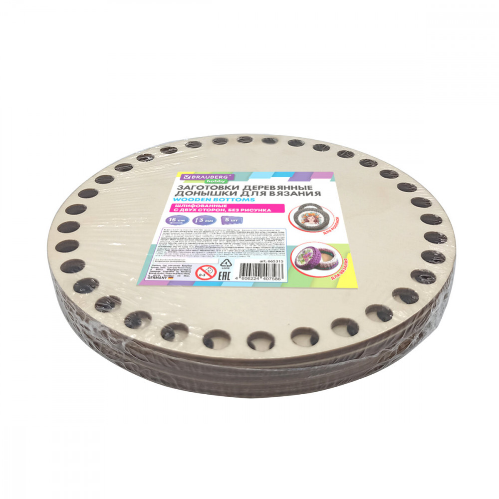 💳 Оплатить за товар можно при получении 🇰🇿 Есть бесплатная доставка по Казахстану от 1 дня 🎁 Копите бонусы с каждой покупки Донышки для вязания деревянные Brauberg Hobby — это материал для создания оригинальных и эксклюзивных декоративных изделий ручной работы. Например, корзинок, шкатулок, панно и т.д. Донышко для вязания представляет собой гладкое и шлифованное с обеих сторон деревянное основание диаметром 15 см и толщиной 3 мм, с 35 отверстиями по периметру, предназначенное для вязания крючком. Диаметр отверстий — 8 мм. В комплекте 5 штук. Комплект донышек — это прочный, устойчивый круглый каркас для вязания своими руками, способствующий экономии пряжи. Основа подходит для плетения из шнура, толстых и тонких трикотажных нитей или джута. Заготовки выполнены из березовой фанеры — материала из дерева высшего сорта, по краям набора равномерно распределены отверстия без зазубрин и скосов. С помощью донышек можно создать корзинки для мелочей, шкатулки, копилки, кашпо, оригинальные женские косметички и сумочки, кукольные люльки, а также выбрать любой узор, расписать изделие по своему вкусу и украсить готовый предмет декоративным дополнением или этикеткой. |