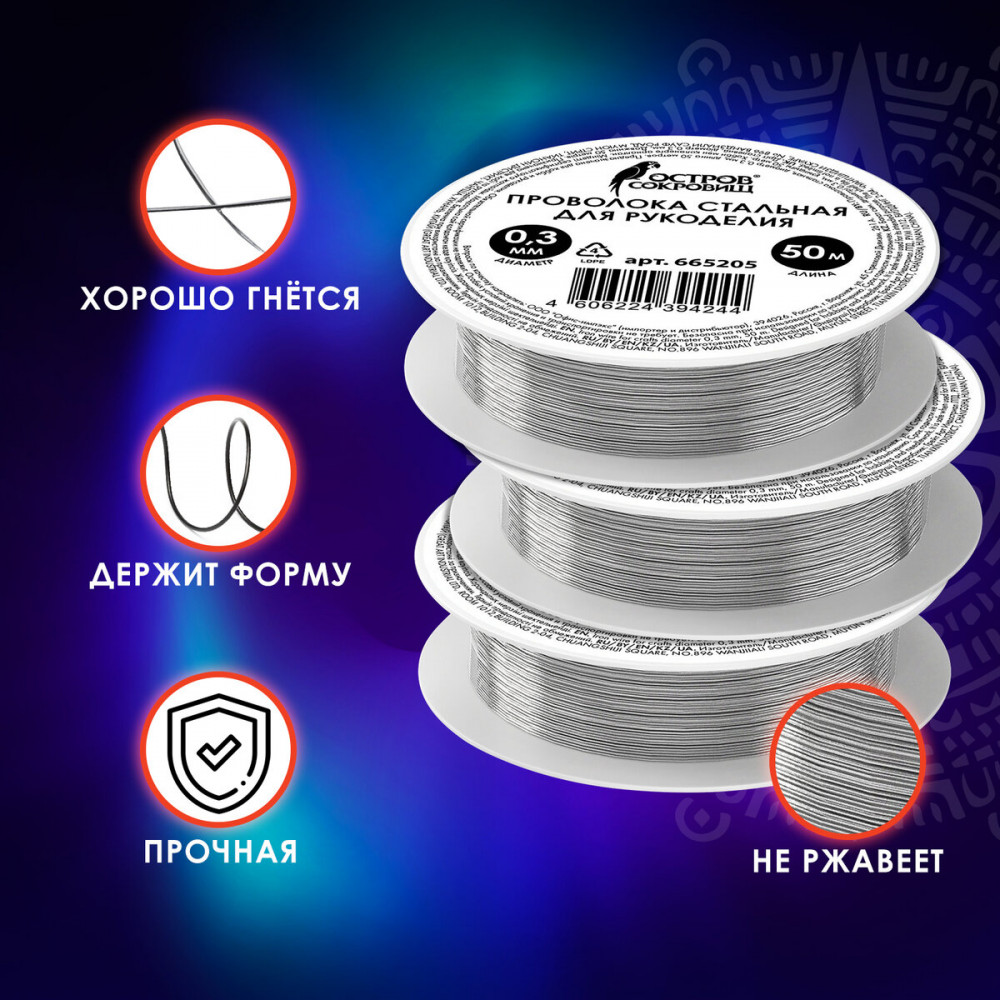 Остров сокровищ Проволока стальная для рукоделия-20% +27 не окисляется прочность бобины гибкость держит форму тонкая