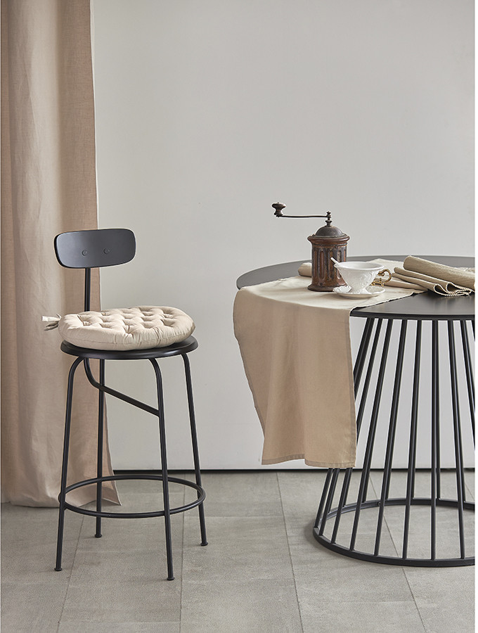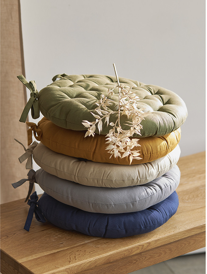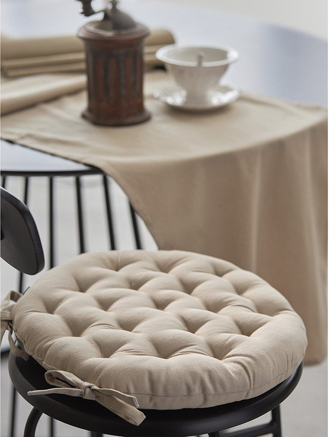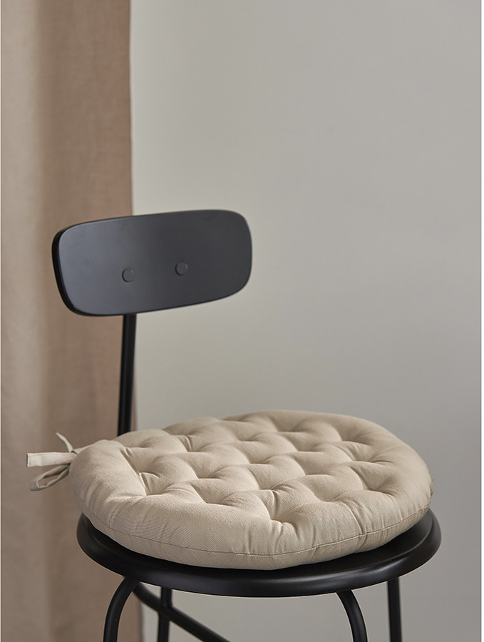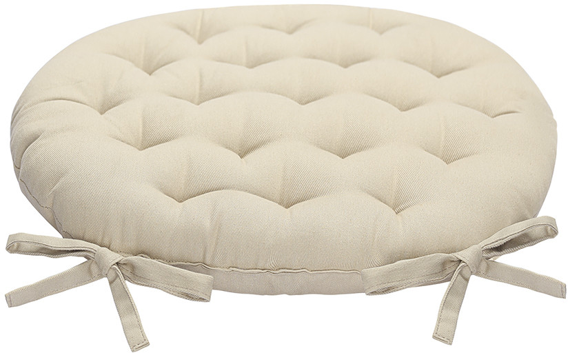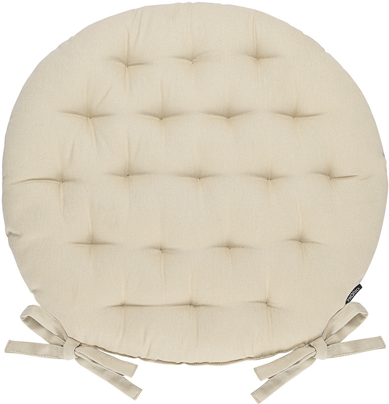 Подушка круглая бежевого цвета из коллекции Essential станет отличным дополнением к вашей кухонной мебели. Ее можно использовать в качестве мягкой накладки на деревянные или металлические стулья, чтобы сделать их жесткую поверхность более удобной для сидения. Подушка легко фиксируется на ножках мебели с помощью специальных завязок. Однотонное изделие в лаконичном дизайне органично вписывается в любой современный интерьер. Чехол подушки изготовлен из экологичного и долговечного 100% хлопка. В качестве наполнителя используется плотный полиэстер, который позволяет изделию сохранять первоначальную форму на протяжении всего срока службы.