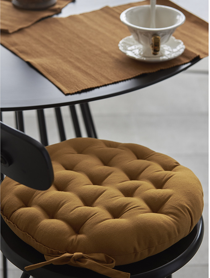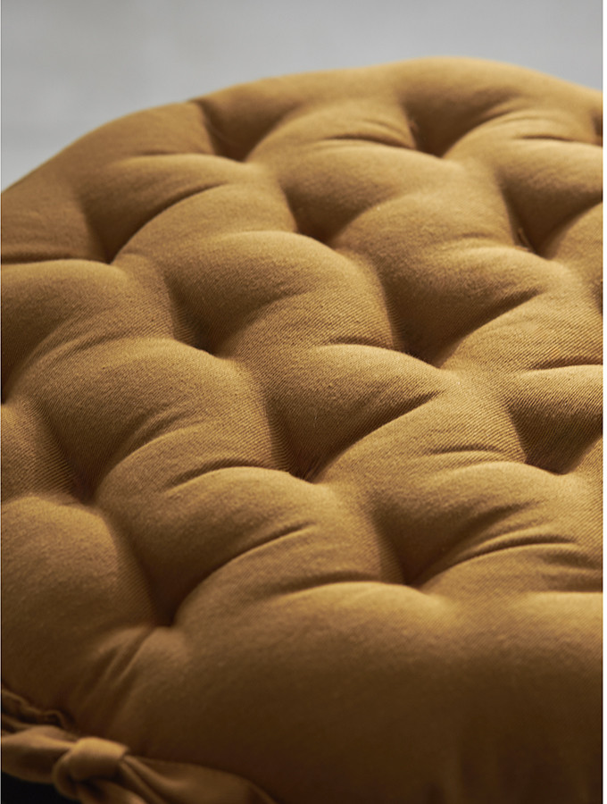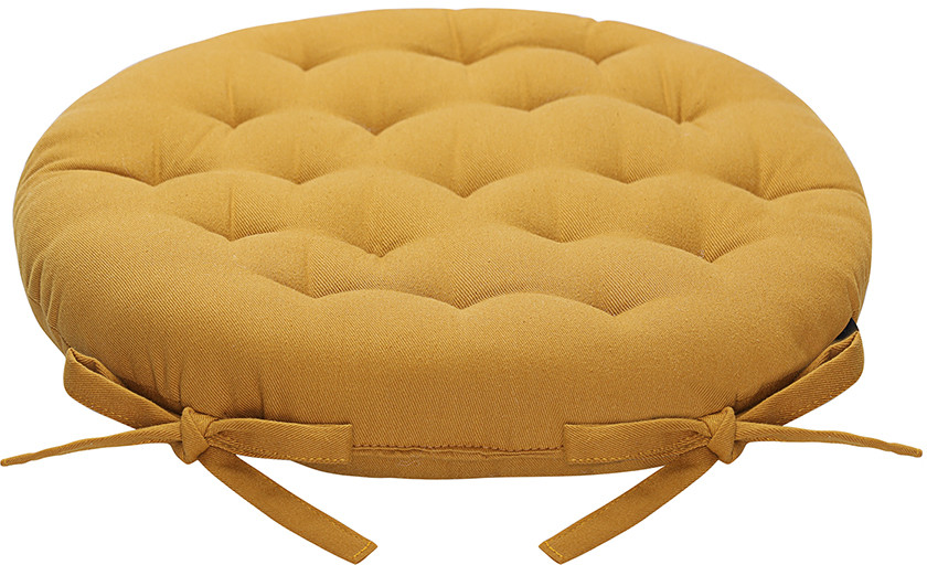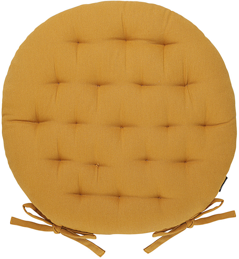 Подушка круглая цвета карри из коллекции Essential станет отличным дополнением к вашей кухонной мебели. Ее можно использовать в качестве мягкой накладки на деревянные или металлические стулья, чтобы сделать их жесткую поверхность более удобной для сидения. Подушка легко фиксируется на ножках мебели с помощью специальных завязок. Однотонное изделие в лаконичном дизайне органично вписывается в любой современный интерьер. Чехол подушки изготовлен из экологичного и долговечного 100% хлопка. В качестве наполнителя используется плотный полиэстер, который позволяет изделию сохранять первоначальную форму на протяжении всего срока службы.