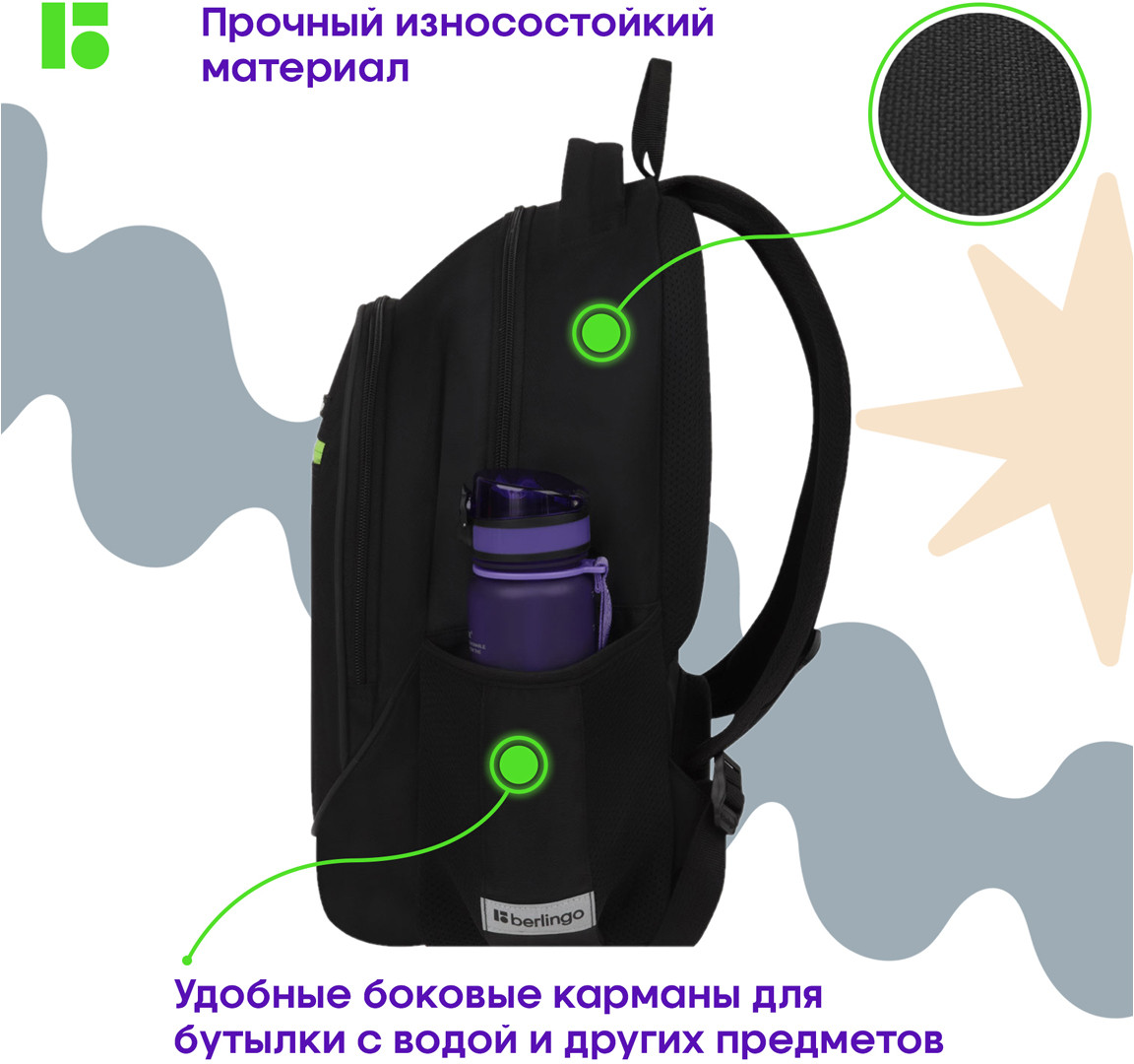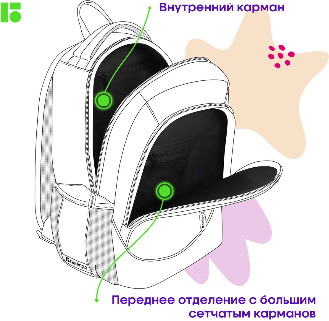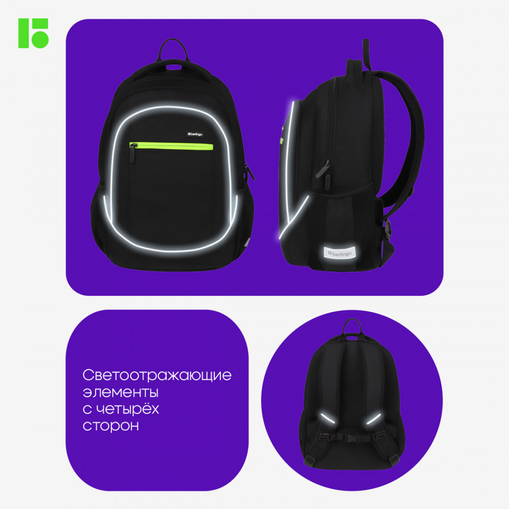 Berlingo Рюкзак «City style»В данный момент этот товар отсутствует в продаже. Возможно, у нас найдется аналогичный или похожий товар здесь. Рюкзак с жесткой анатомической спинкой предназначен для детей среднего и старшего школьного возраста. В рюкзаке предусмотрены 2 отделения и 3 кармана. Внутри имеется 1 карман на резинке, 1 карман на молнии, 1 открытый карман и 1 карман из сетки на молнии. Эргономичная вентилируемая спинка, широкие регулируемые лямки и нагрудное крепление обеспечивают равномерное распределение нагрузки на позвоночник, а усиленное дно, плотная ручка для переноски и ручка-петля делают рюкзак максимально удобным. Световозвращающие элементы помогают обеспечить безопасность ребенка в темное время суток. |