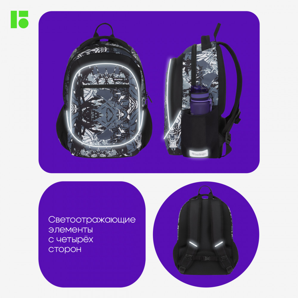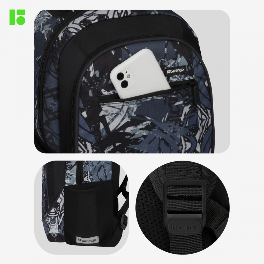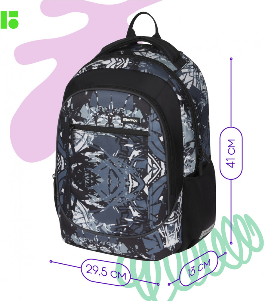 Berlingo Рюкзак «Grey pattern»В данный момент этот товар отсутствует в продаже. Возможно, у нас найдется аналогичный или похожий товар здесь. Рюкзак с жесткой анатомической спинкой предназначен для детей среднего и старшего школьного возраста. В рюкзаке предусмотрены 2 отделения и 3 кармана. Внутри имеется 1 карман на резинке, 1 карман на молнии, 1 открытый карман и 1 карман из сетки на молнии. Эргономичная вентилируемая спинка, широкие регулируемые лямки и нагрудное крепление обеспечивают равномерное распределение нагрузки на позвоночник, а усиленное дно, плотная ручка для переноски и ручка-петля делают рюкзак максимально удобным. Световозвращающие элементы помогают обеспечить безопасность ребенка в темное время суток. |