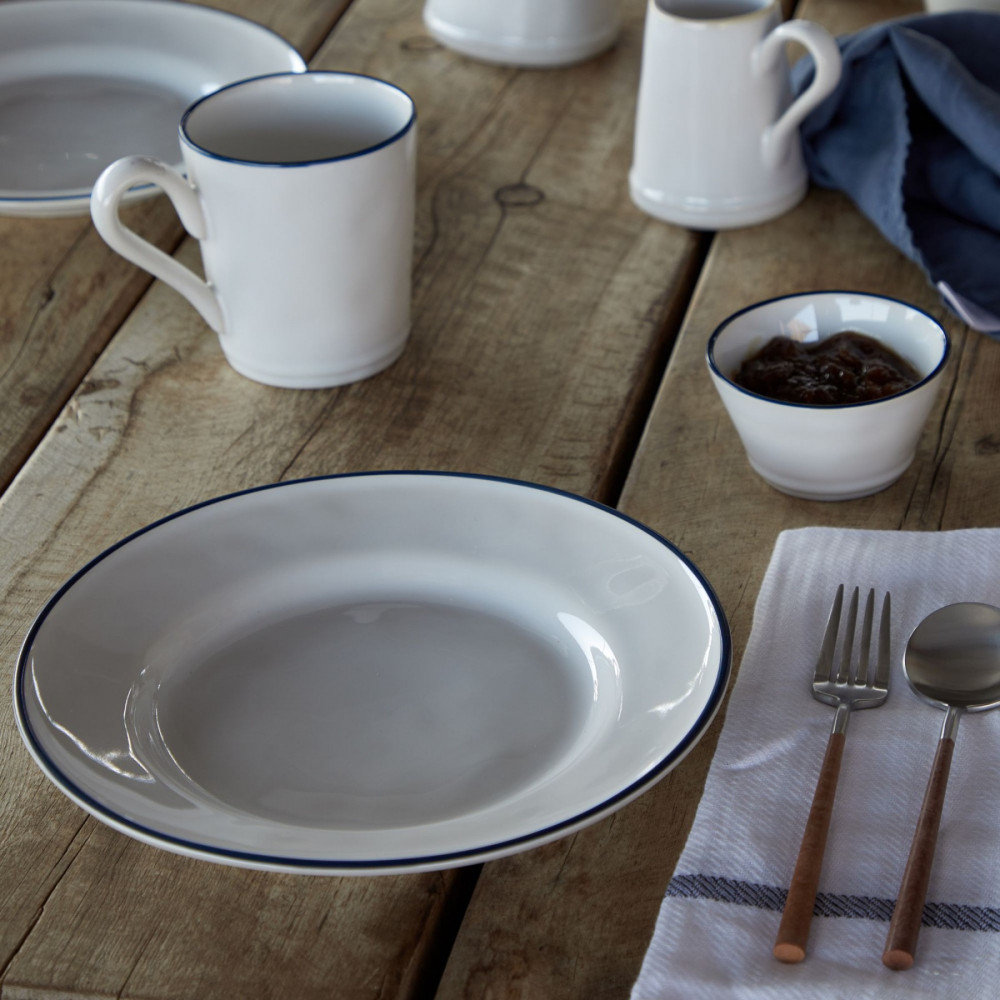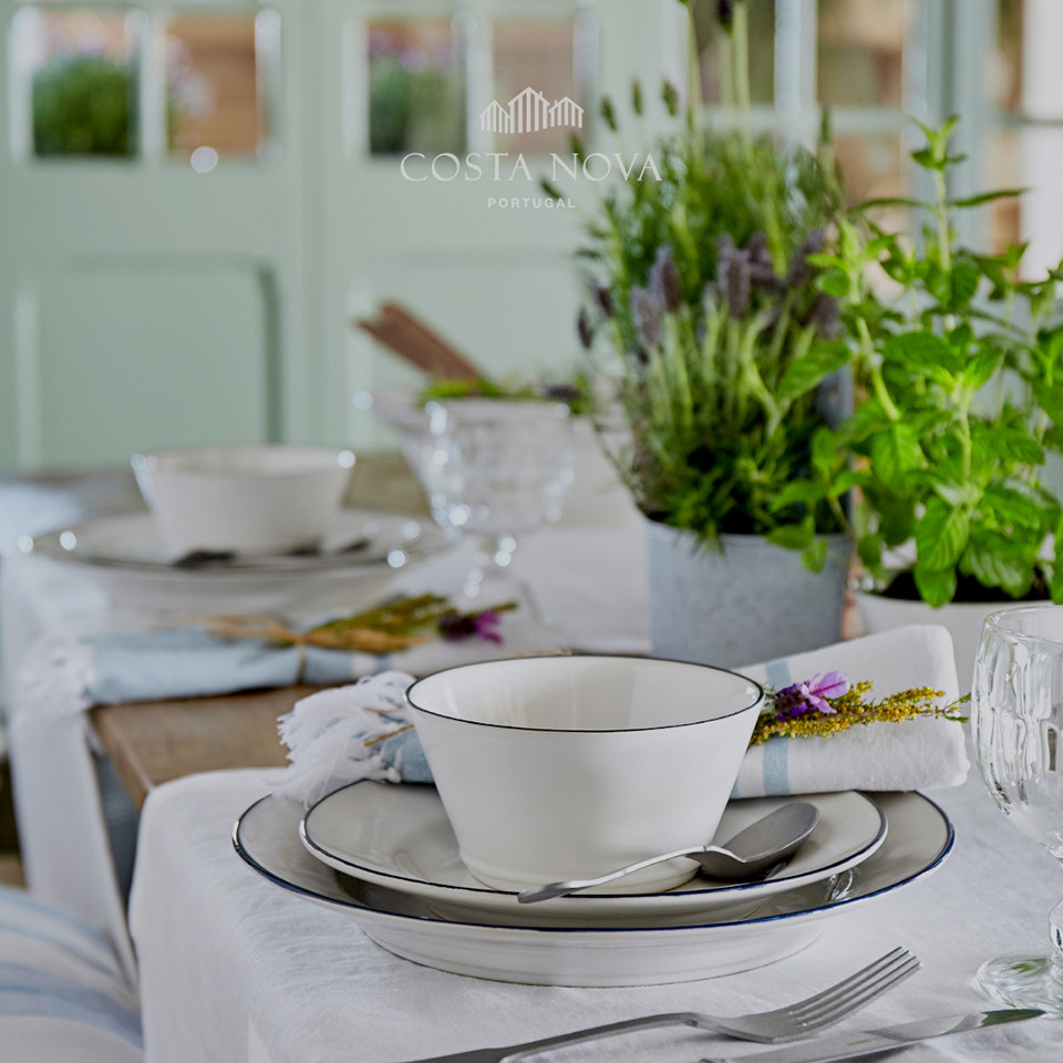 Серия Beja от компании Costa Nova включает стильную посуду и предметы сервировки, выполненные из высококачественной керамики и имеющие оригинальный современный дизайн. Предметы отличаются изящными линиями и декорированы темно-синим ободком, который символизирует архитектурный ландшафт Бежи и навевает ностальгические мысли о старинной эмалированной посуде. Лаконичный дизайн изделий придает любой сервировке изысканный, но повседневный уютный вид.