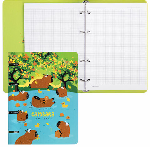 Brauberg Тетрадь на кольцах «Капибары»-20% +57 размер клетка прикольная мягкая обложка