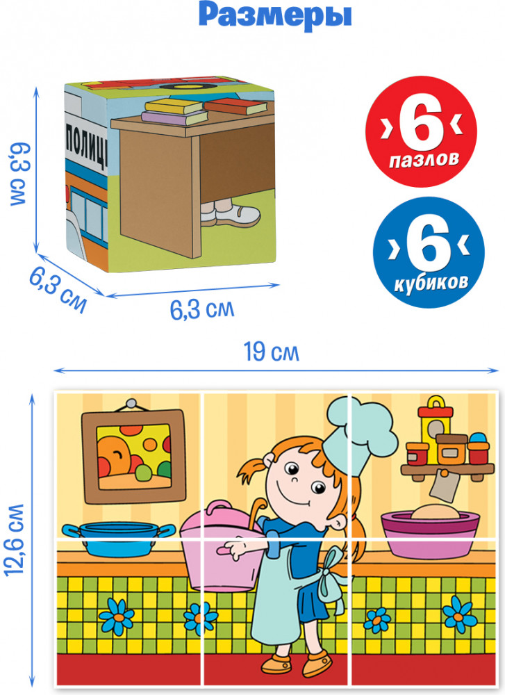 💳 Оплатить за товар можно при получении 🇰🇿 Есть бесплатная доставка по Казахстану от 1 дня 🎁 Копите бонусы с каждой покупки Серия: Занимательный блокнот Кубики-пазлы для детей из картона — это игровой набор с элементами детского творчества. Из кубиков можно собрать 6 пазлов с яркими тематическими картинками. В наборе 6 листов из плотного картона с вырубкой для извлечения заготовок кубиков. Каждая заготовка имеет 2 стороны. Ребенок сможет выбрать, какой стороной собрать кубик — яркой или с цветными контурами для самостоятельного раскрашивания. В комплекте есть инструкция, по которой ребенок сам сможет собрать каждый кубик. Для сборки ему понадобится только клей! Благодаря плотному картону (230 г/м) кубики держат форму и прослужат долго. Увлекательная развивающая игра для детей от 3 лет развивает усидчивость, мелкую моторику рук и воображение. |