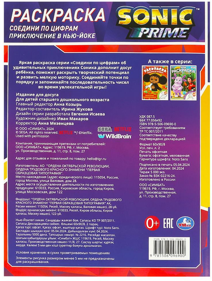 💳 Оплатить за товар можно при получении 🇰🇿 Есть бесплатная доставка по Казахстану от 1 дня 🎁 Копите бонусы с каждой покупки Раскраска «Соник. Приключение в Нью-Йорке» из серии «Соедини по цифрам» ТМ «УМка» — интересный и полезный досуг для маленьких любознаек: |