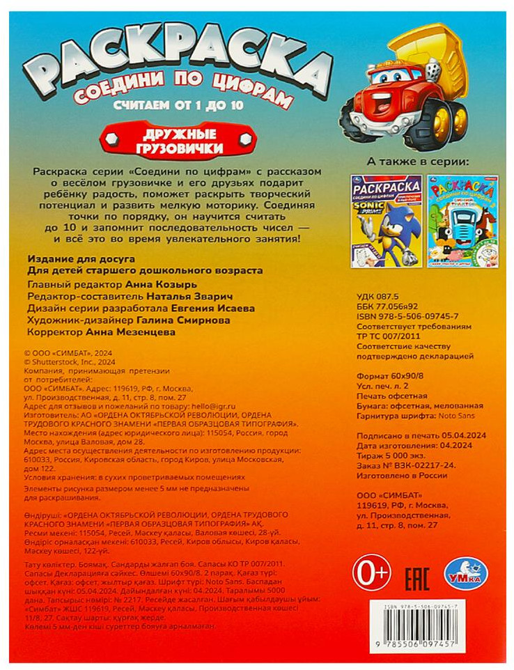 💳 Оплатить за товар можно при получении 🇰🇿 Есть бесплатная доставка по Казахстану от 1 дня 🎁 Копите бонусы с каждой покупки Раскраска «Дружные грузовички» из серии «Соедини по цифрам» ТМ «УМка» — интересный и полезный досуг для маленьких любознаек: |