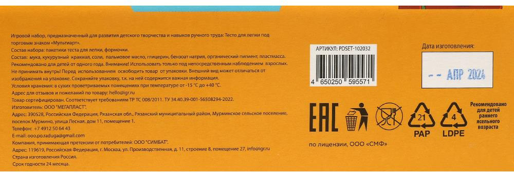 Multi Art Набор с тестом для лепки и формочками «Мороженое для Чебурашки»-30% +124