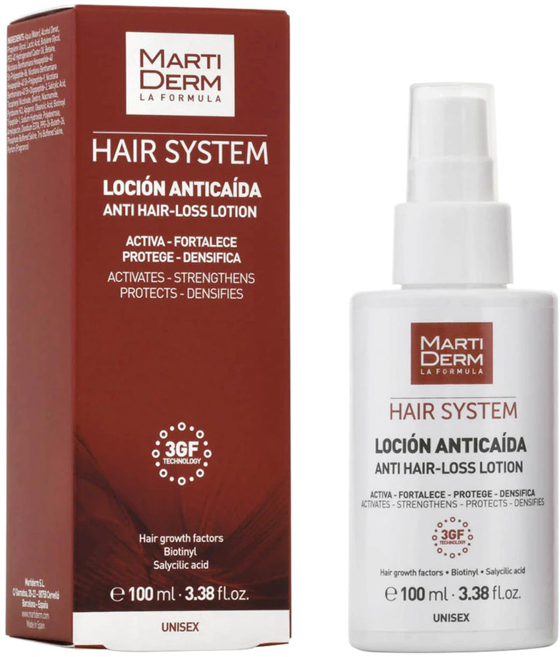 В данный момент этот товар отсутствует в продаже. Возможно, у нас найдется аналогичный или похожий товар здесь. «Martiderm HAIR SYSTEM Anti Hair-Loss Lotion» — это эффективное средство для борьбы с выпадением волос. Оно содержит запатентованную комбинацию активных ингредиентов, которые действуют на разные факторы, вызывающие выпадение волос. Средство по уходу за волосами, которое помогает активировать волосяные фолликулы, остановить выпадение волос и укрепить корни волос. Лосьон с биотехнологической системой для волос HGFx3. Можно комбинировать с другими ингредиентами против выпадения волос. Подходит как для женщин, так и для мужчин. HGFx3 — это усовершенствованная система трех факторов роста волос, которые могут помочь остановить выпадение волос и стимулировать их рост. Три эксклюзивных фактора роста (IGF, VEGF и фоллистатин) в HGFx3 действуют синергетически на капилляры: ускоряют рост волос во время фазы роста и стимулируют образование новых кровеносных сосудов вокруг фолликулов. Таким образом улучшается кровообращение и питание кожи головы, прекращается выпадение волос.