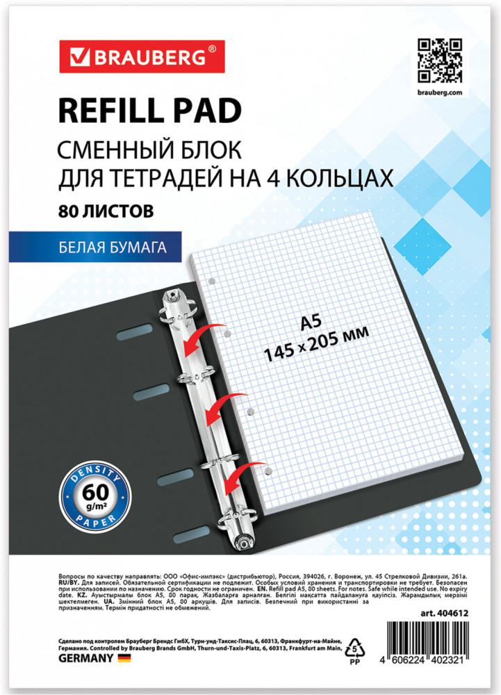 Brauberg Сменный блок для тетради на кольцах «Белый»-30% +18