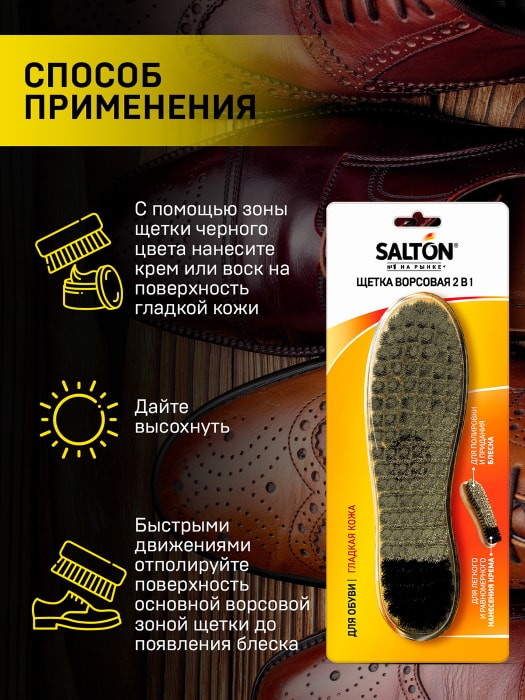Salton Щетка ворсовая для обуви из гладкой кожи-20% +109 густой ворс полирует не линяет удобная ручка приятный внешний вид