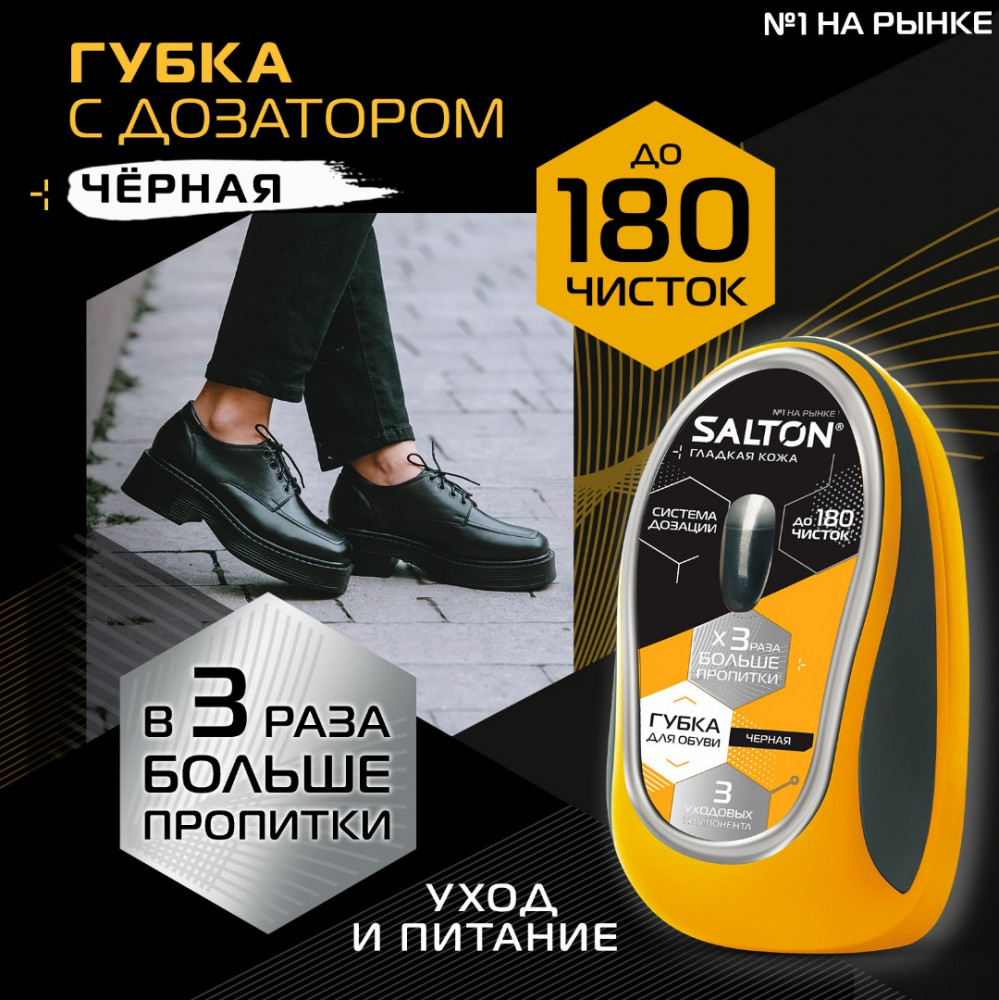 Salton Губка с дозатором для обуви из гладкой кожи, черная-20% +91 удобная ручка без разводов ровное нанесение лучшее качество приятный запах